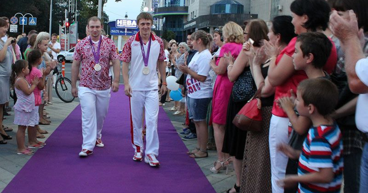На Театральной площади состоялось торжественное закрытие проекта «Live Site». Участниками торжественной церемонии стали прилетевшие из Лондона серебряные призеры летней Олимпиады Дмитрий Ушаков и Александр Иванов.