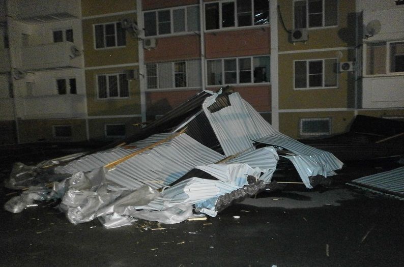 Напомним, около 21:00 вечера 11 августа во время грозы резкий порыв ветра сорвал кровлю с пятиэтажного 50-квартирного дома по ул. Душистой, 71. Конструкция врезалась в соседнюю многоэтажку, разрушила балконные ограждения, выбила окна нескольких квартир, а затем, прокатившись по земле, повредила 18 припаркованных автомобилей. Ранения от падающих осколков получили оказавшиеся во дворе мужчина и женщина, последняя с травмами госпитализирована.