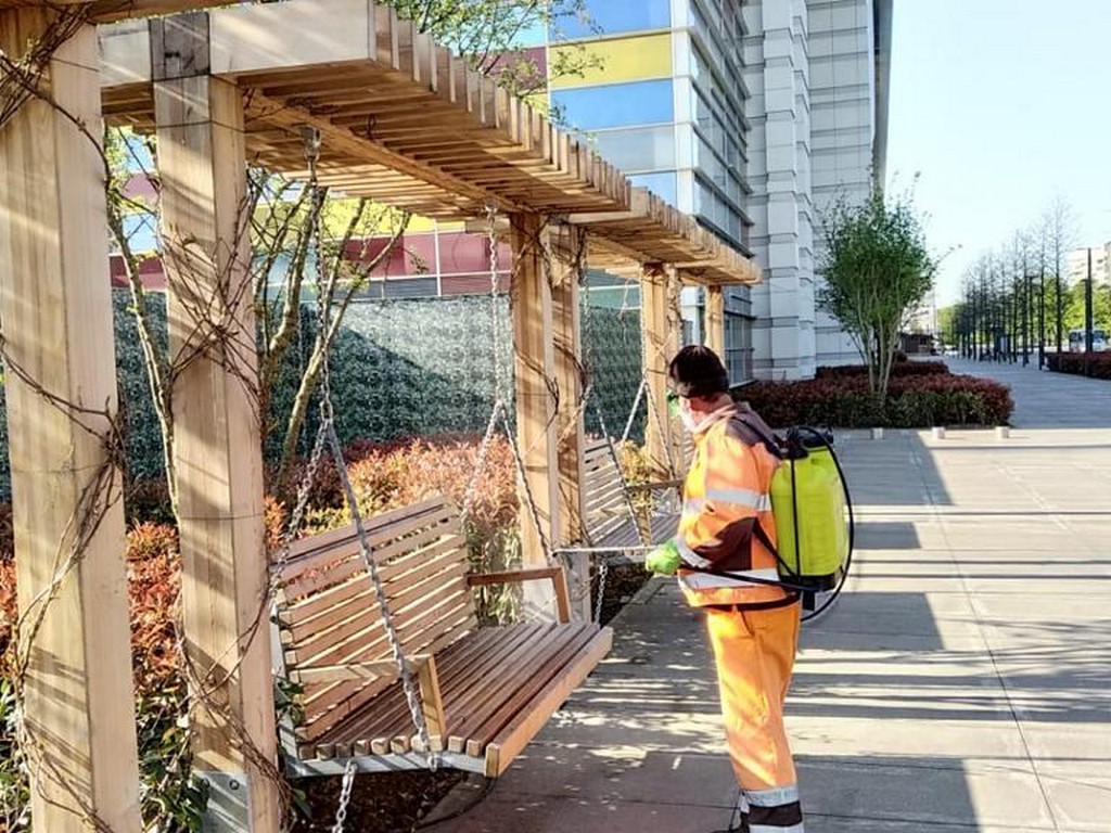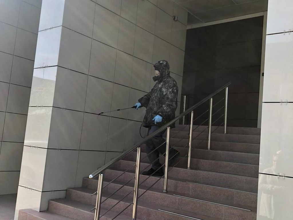 Начиная с ночи 17 апреля и с раннего утра 18 апреля, с применением дезинфицирующих средств обработали: