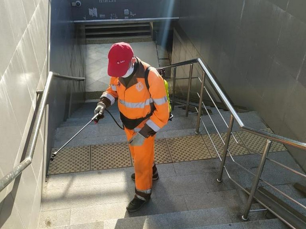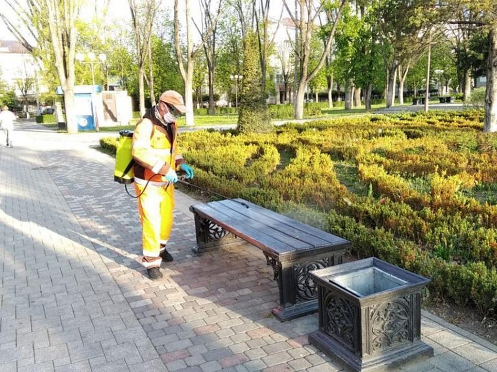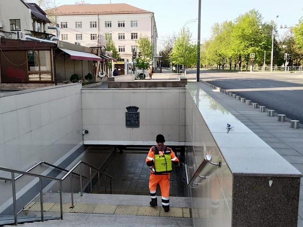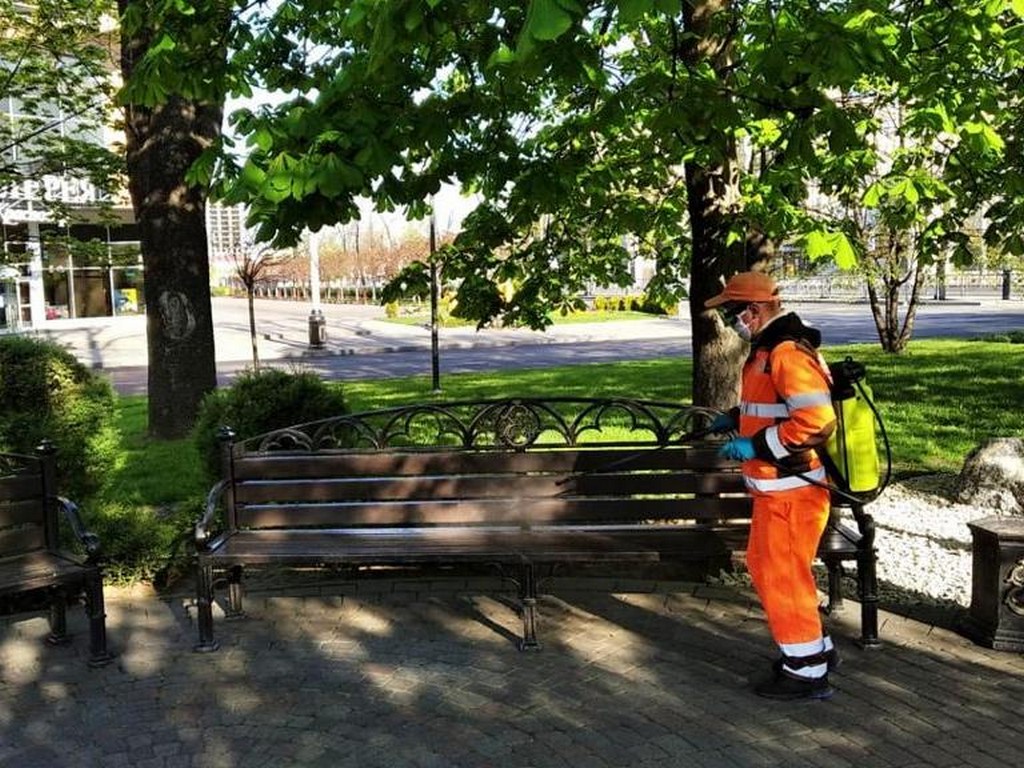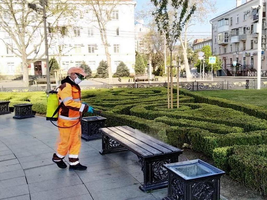 18 апреля 2020С применением дезинфицирующих и антисептических препаратов несколько раз в день обрабатывают весь городской общественный транспорт. Ночью 8 поливомоечных машин обрабатывают дороги и тротуары, с раннего утра 60 специалистов с переносными ранцевыми опрыскивателями дезинфицируют остановки общественного транспорта, скверы, подъезды домов, детские площадки.