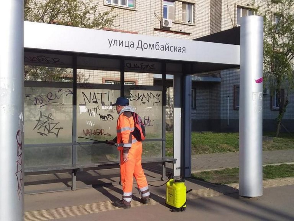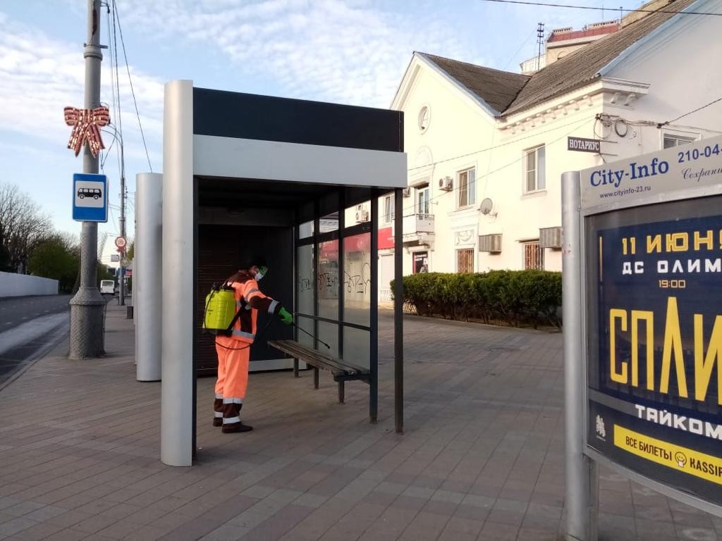Ежедневно в Краснодаре дезинфицируют более одной тысячи остановок общественного транспорта