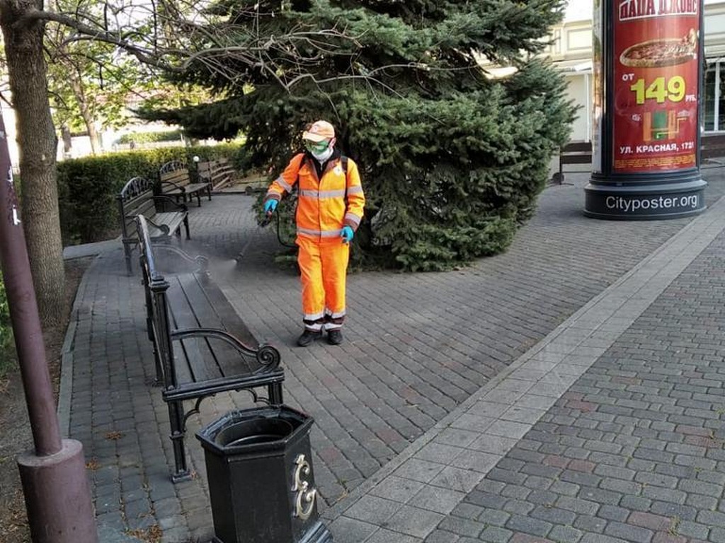 Масштабную дезинфекцию краевого центра проводят по поручению главы Краснодара Евгения Первышова. Ежедневная обработка проходит третью неделю подряд, начиная с 31 марта.