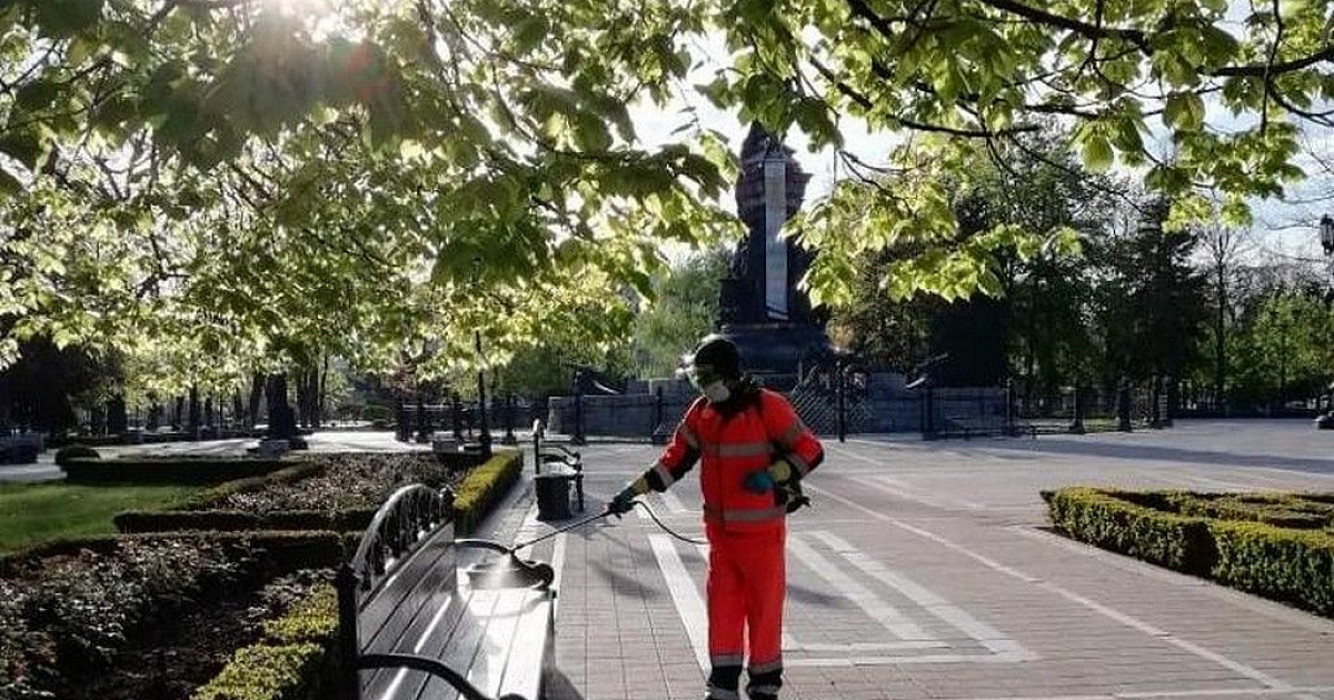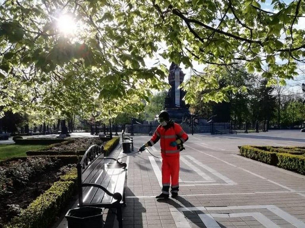 Масштабную дезинфекцию краевого центра проводят по поручению главы Краснодара Евгения Первышова. Ежедневная обработка проходит третью неделю подряд, начиная с 31 марта.