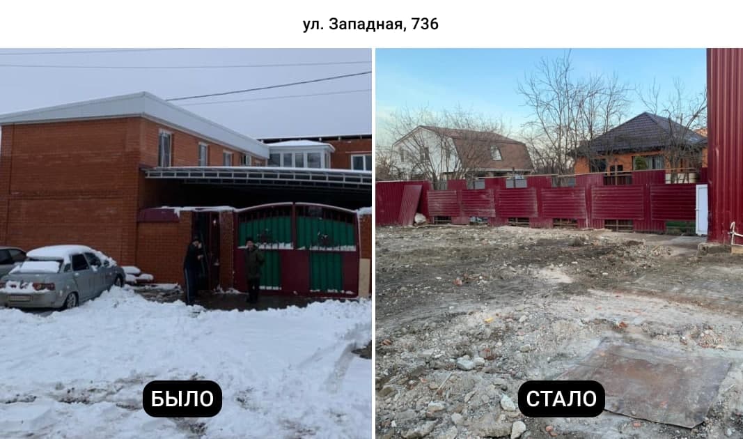 Трёхэтажная капитальная постройка с навесами общей площадью около 300 кв. м располагалась по ул. Западной в Прикубанском округе. Здание возвели без разрешения на строительство, с грубым нарушением градостроительных норм. По иску управления муниципального контроля администрации города суд признал этот объект незаконно возведённым и принял решение о сносе.