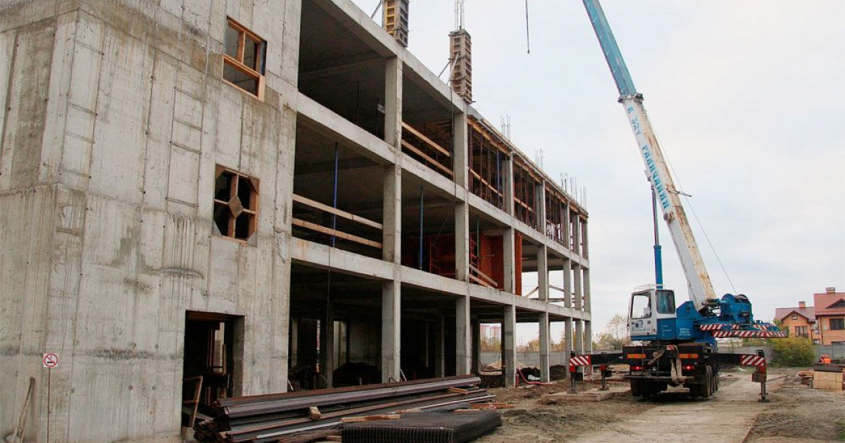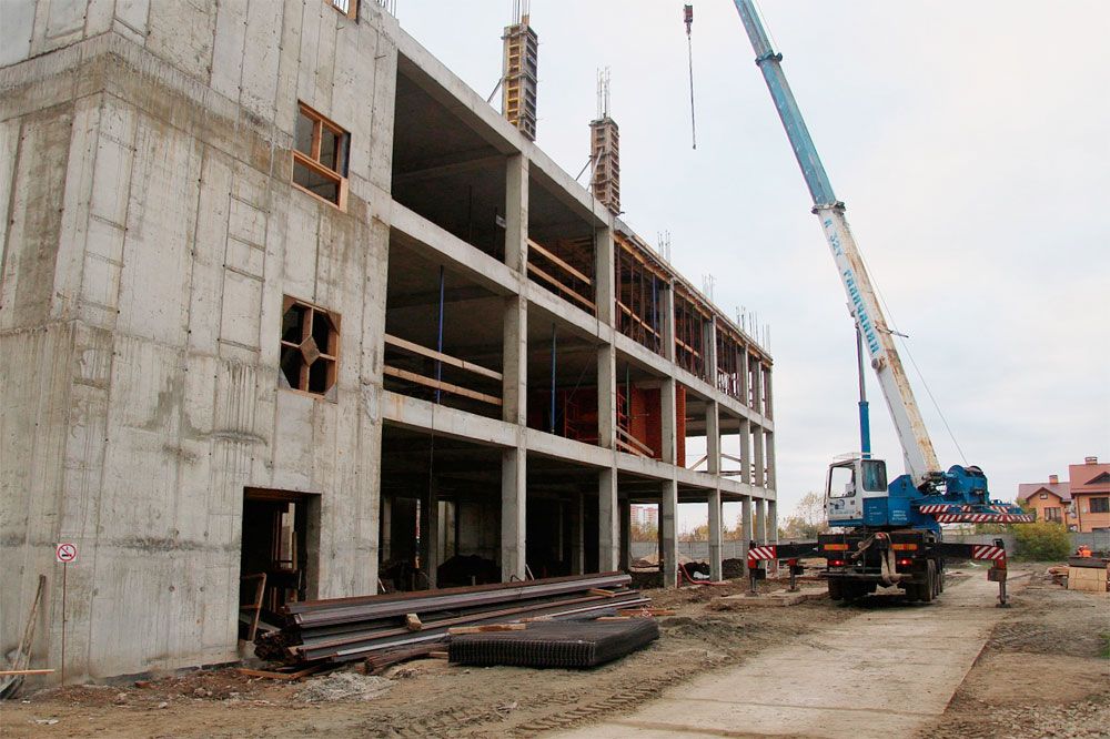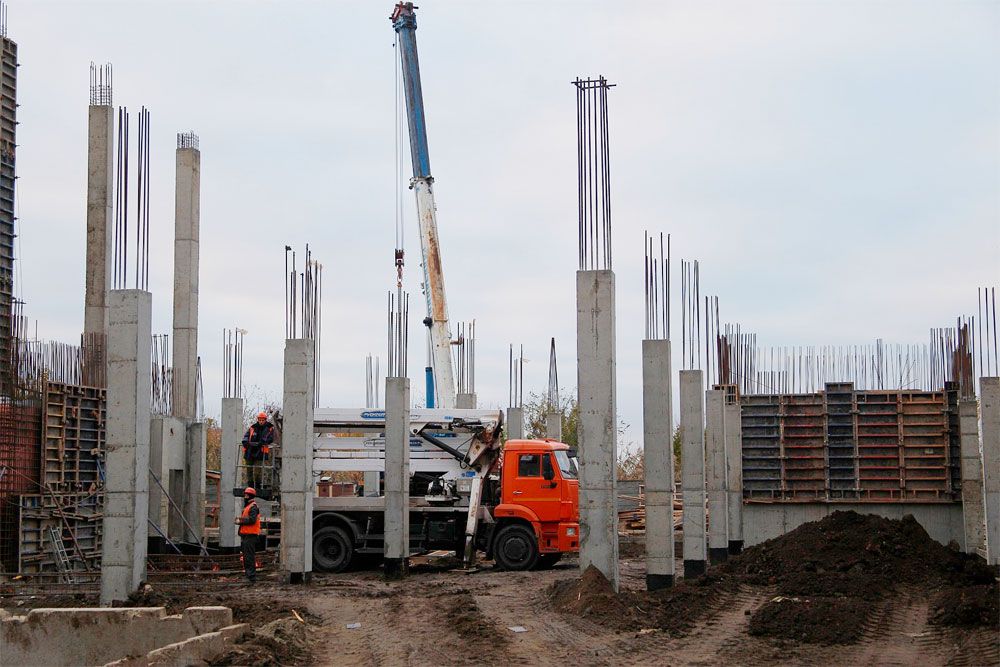 Сейчас на площадке идут монолитные работы. Строители возводят четвертый этаж первого корпуса и стены бассейна.