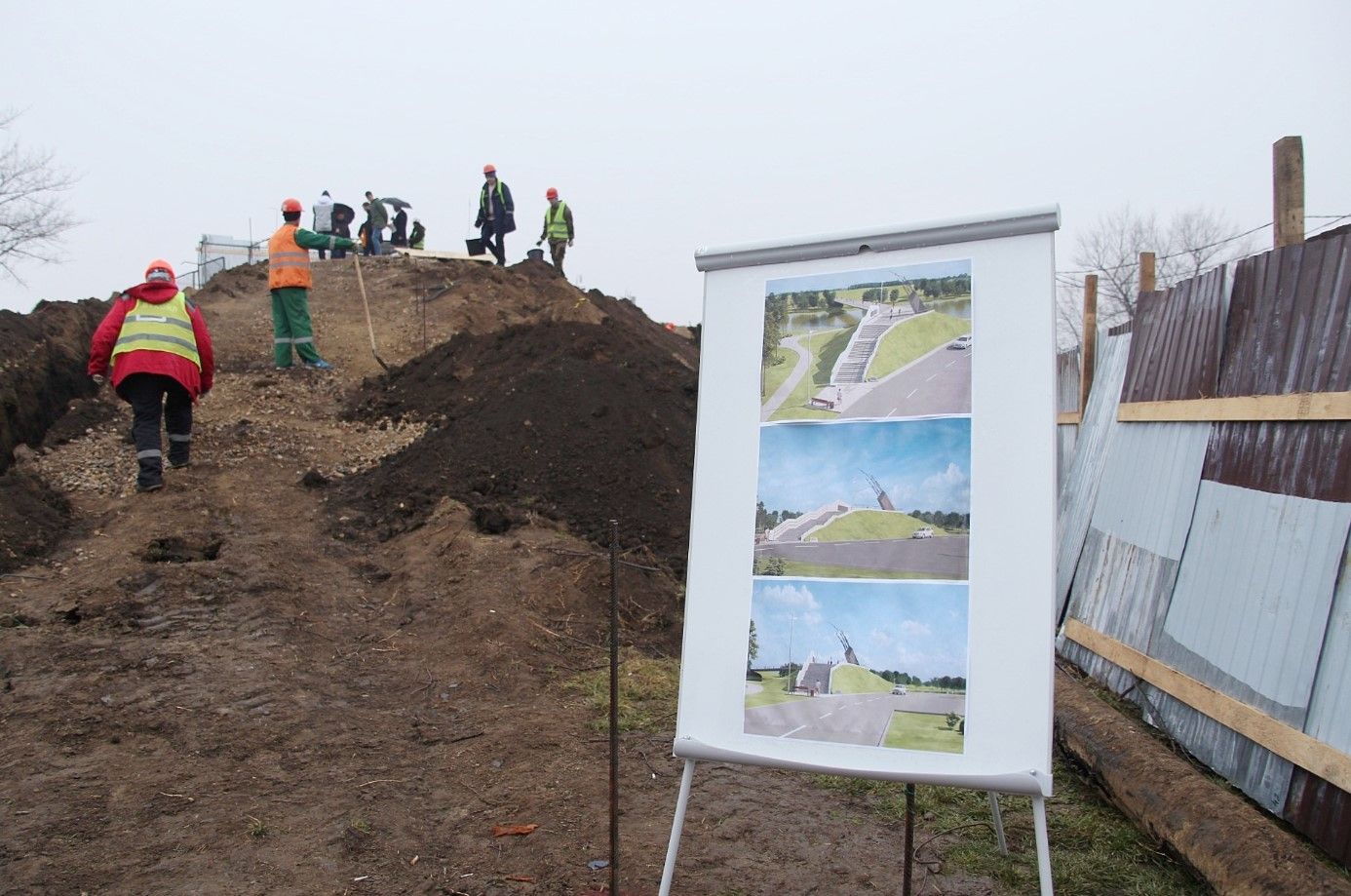 Площадка огорожена, установлен паспорт объекта. В соответствии с разработанным проектом, в центре монумента установят наклоненную стелу усеченной формы с торчащей арматурой — как символ оборвавшейся переправы. Ее разместят на вершине возвышенности. Там же сделают смотровую площадку, переходящую в мост.