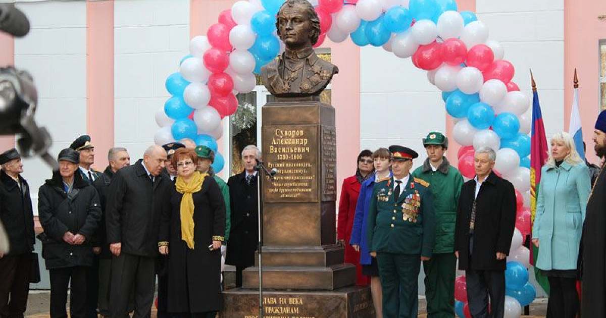 Символично, что следом за Невским открыт бюст Суворова, названному Александром в честь этого великого князя-полководца, ставшего святым. Суворов пять раз бывал на Кубани. Но только в ноябре 2004 года в 275-й день рождения легендарному военноначальнику открыт памятник в Мариинском сквере.