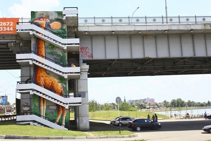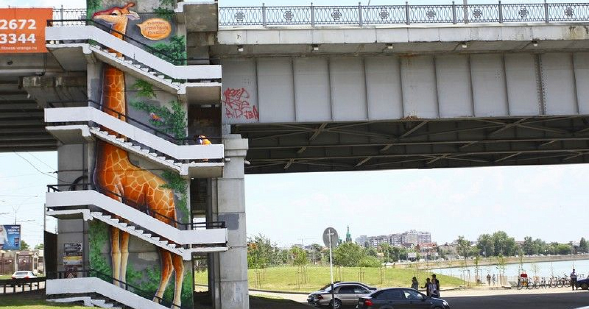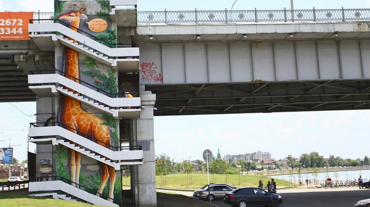 Владимир Евланов оценил рисунок жирафа в стиле стрит-арт на Тургеневском мосту Краснодара