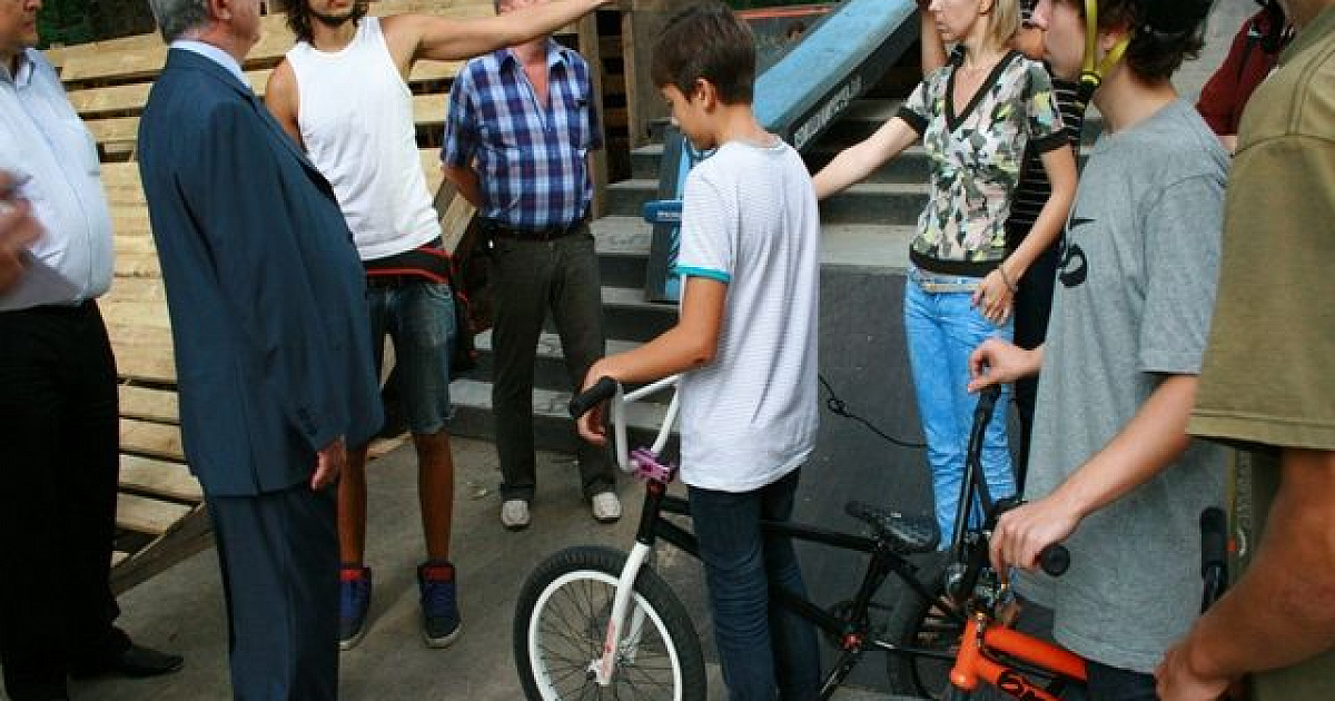 Владимир Евланов пообщался с любителями экстремальных видов спорта и поинтересовался, какую помощь им может оказать городская власть. По словам Константина Таранова, было бы неплохо провести на территорию скейт-парка освещение, чтобы тренироваться в вечернее время, а также предусмотреть зрительские места.