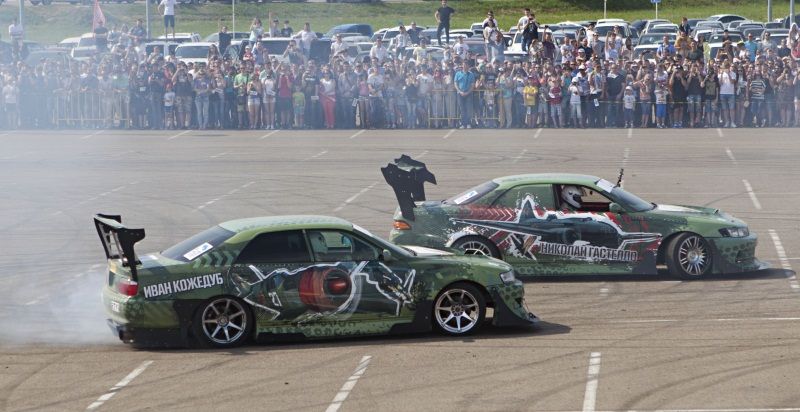 В «дрифт — шоу» приняли участие 6 именных спортивных болидов дисциплины «дрифт», названных в честь героев Советского Союза В.Зайцева, И. Кожедуба, Н. Гастелло, Д. Лавриненко, А. Матросова, А. Покрышкина.