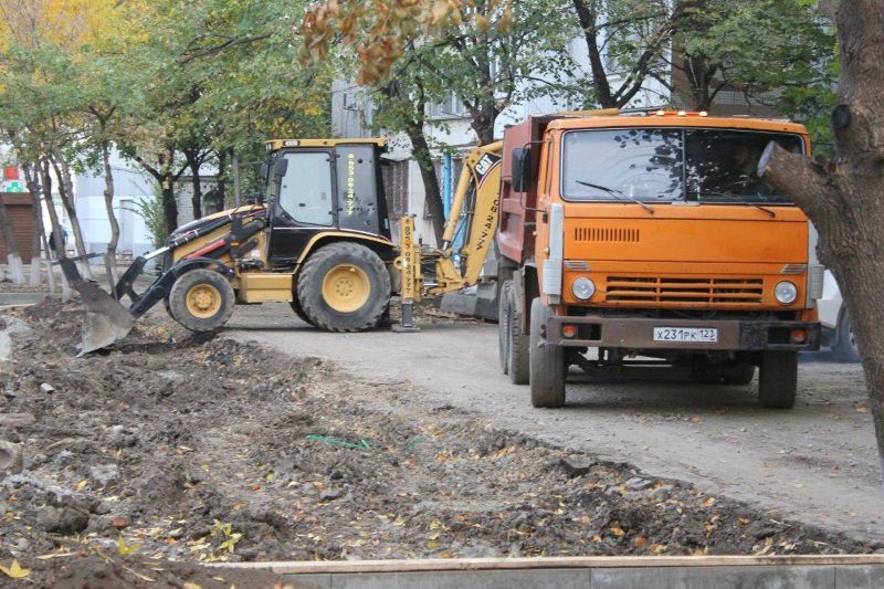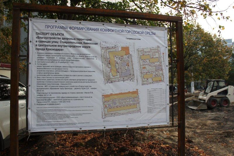 Общая площадь благоустройства дворов по ул. Ставропольской, где идут работы, — более 5 га. На внутридомовой территории на углу улиц им. Шевченко и Кавказской установлен паспорт объекта с проектом и подробной информацией о том, что будет сделано.