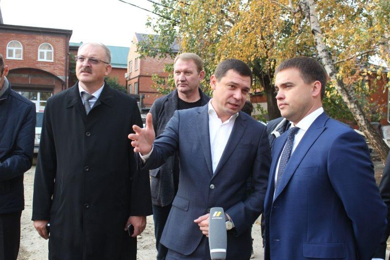 Евгений Первышов прошёл по территории двора дома по ул. Ставропольской, 178, оценил ход работ. При этом заметил, что необходимо привести в порядок также расположенное в центре площадки здание трансформаторной подстанции. Заместитель главы города Евгений Зименко сообщил, что уже есть договоренность с собственником — отделка стен строения будет обновлена. Завершить благоустройство планируется к 1 декабря.