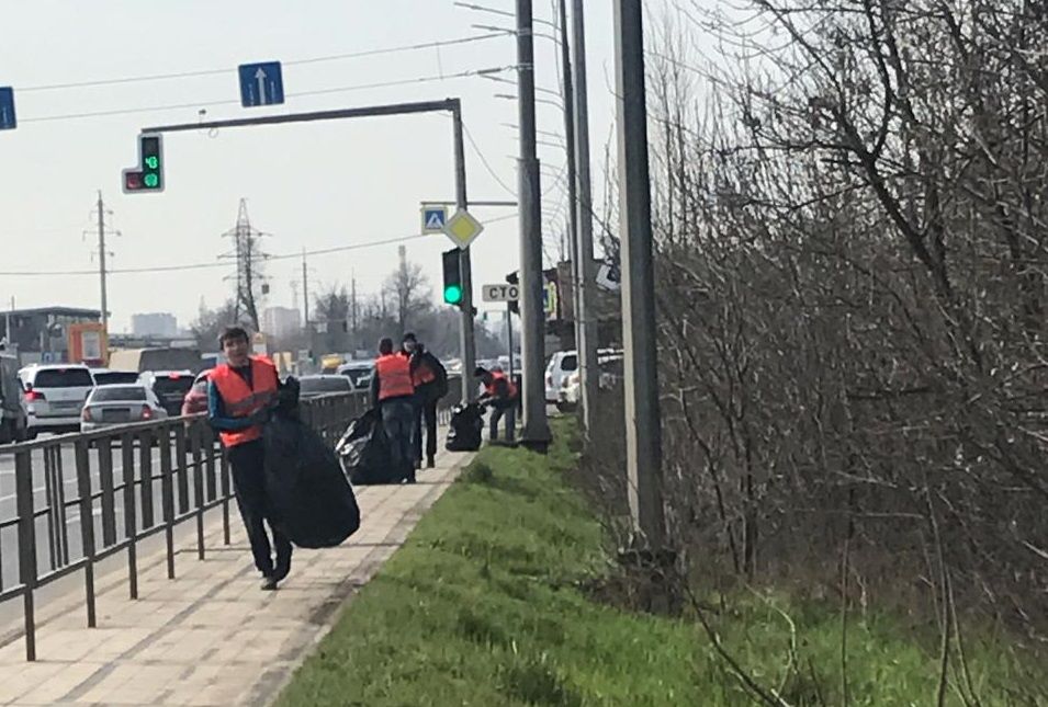 В рамках челленджа #trashtag в Краснодаре очистили от мусора участок Ростовского шоссе