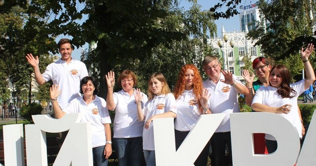 В поэтической зарядке приняла участие молодежная делегация из города-побратима Карлсруэ, прибывшая в Краснодар на День города.