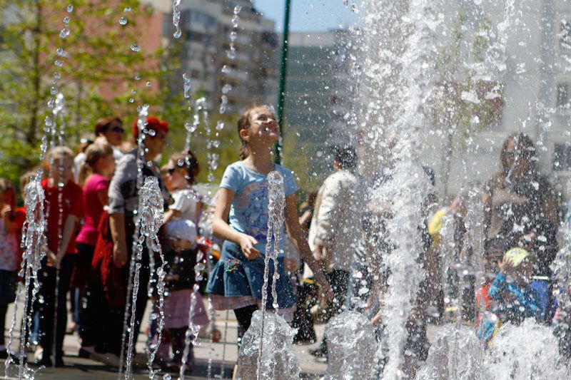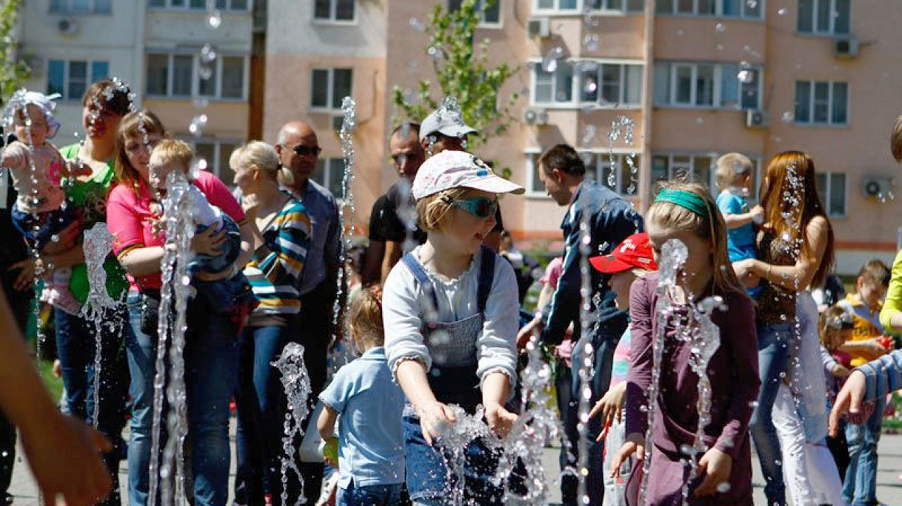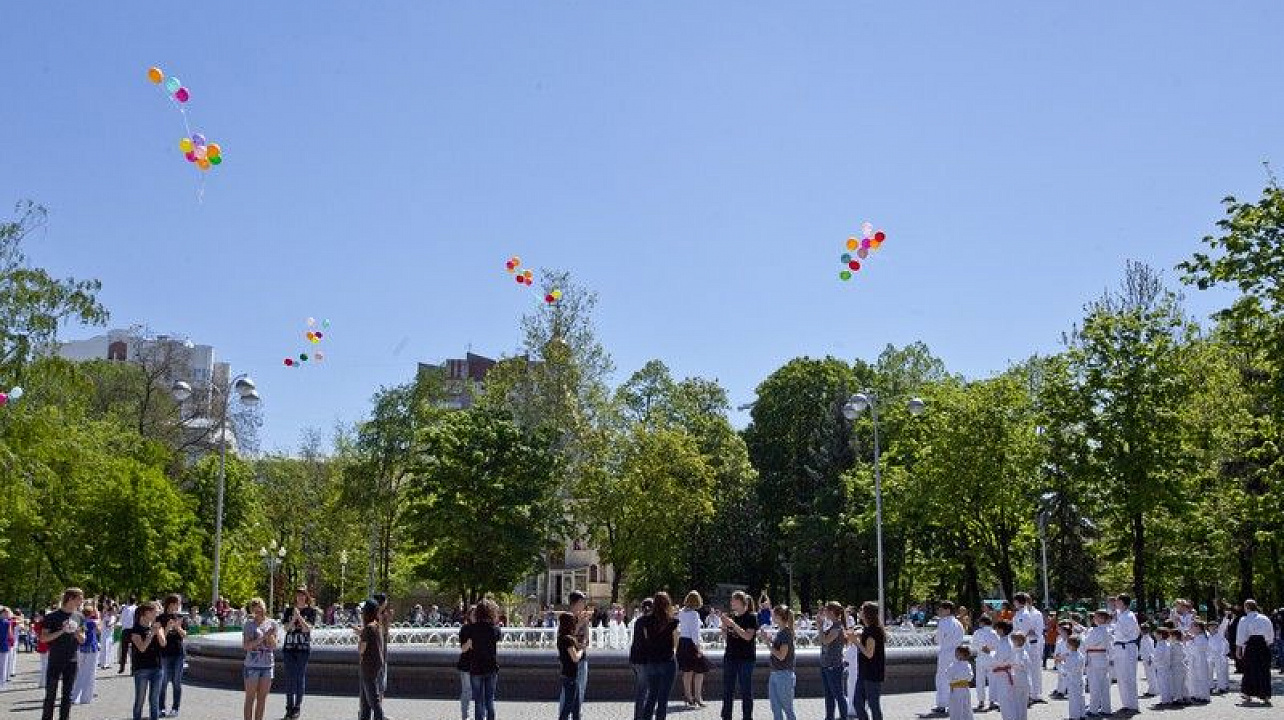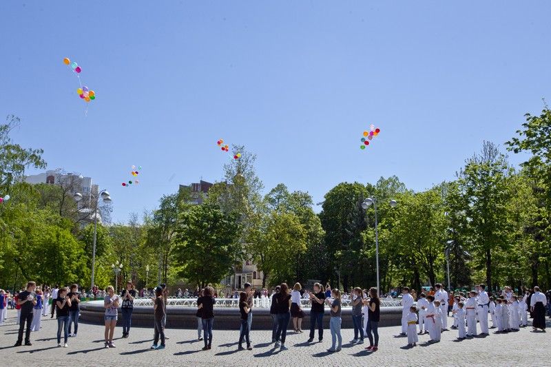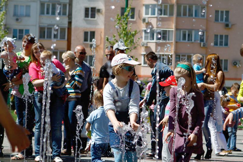 У фонтана на Бульваре Платановом в Юбилейном микрорайоне развернулась развлекательная программа "Волшебный город детства", подготовленная детскими творческими коллективами Западного внутригородского округа. Горожане приняли участие в конкурсах и играх с участием ростовых кукол, а также стали свидетелями шоу мыльных пузырей.