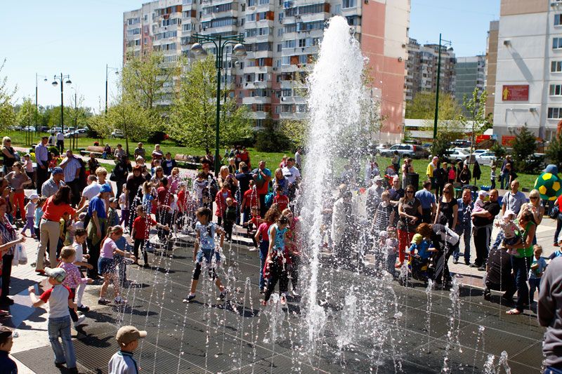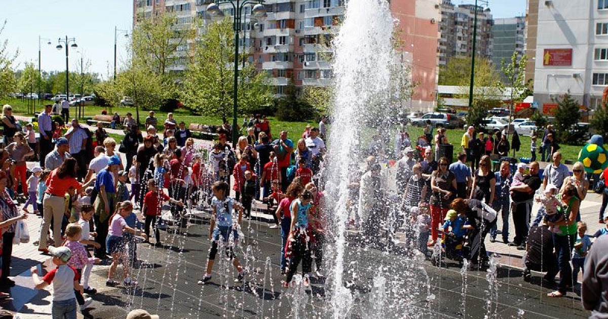 Одновременно со своими "старшими" собратьями в 12:00 были запущены фонтан на центральной аллее парка "Чистяковская роща" и фонтан в сквере "Фестивальный" на пересечение улиц Атарбекова и Тургенева. Здесь также были организованы концертные и игровые программы с участием творческих коллективов Прикубанского внутригородского округа, танцы с ростовыми куклами, конкурсы рисунков на асфальте.
