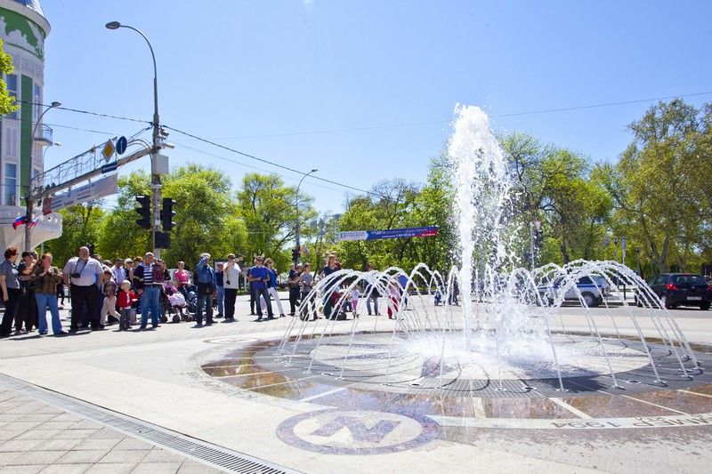 В Краснодаре сегодня ровно в полдень одновременно заработали городские фонтаны. Запуск каждого из них сопровождался концертами и выступлениями творческих коллективов.