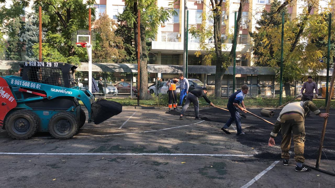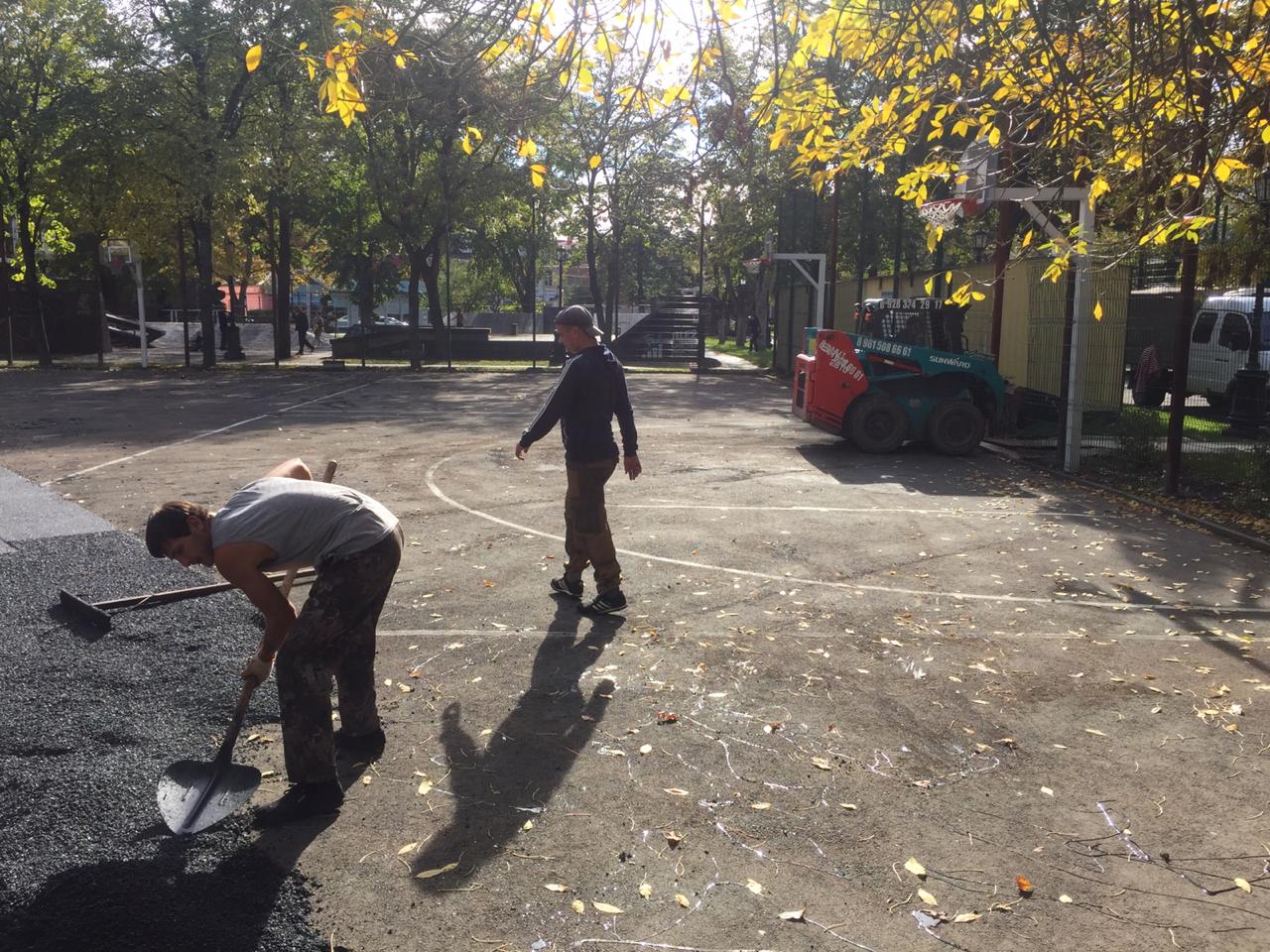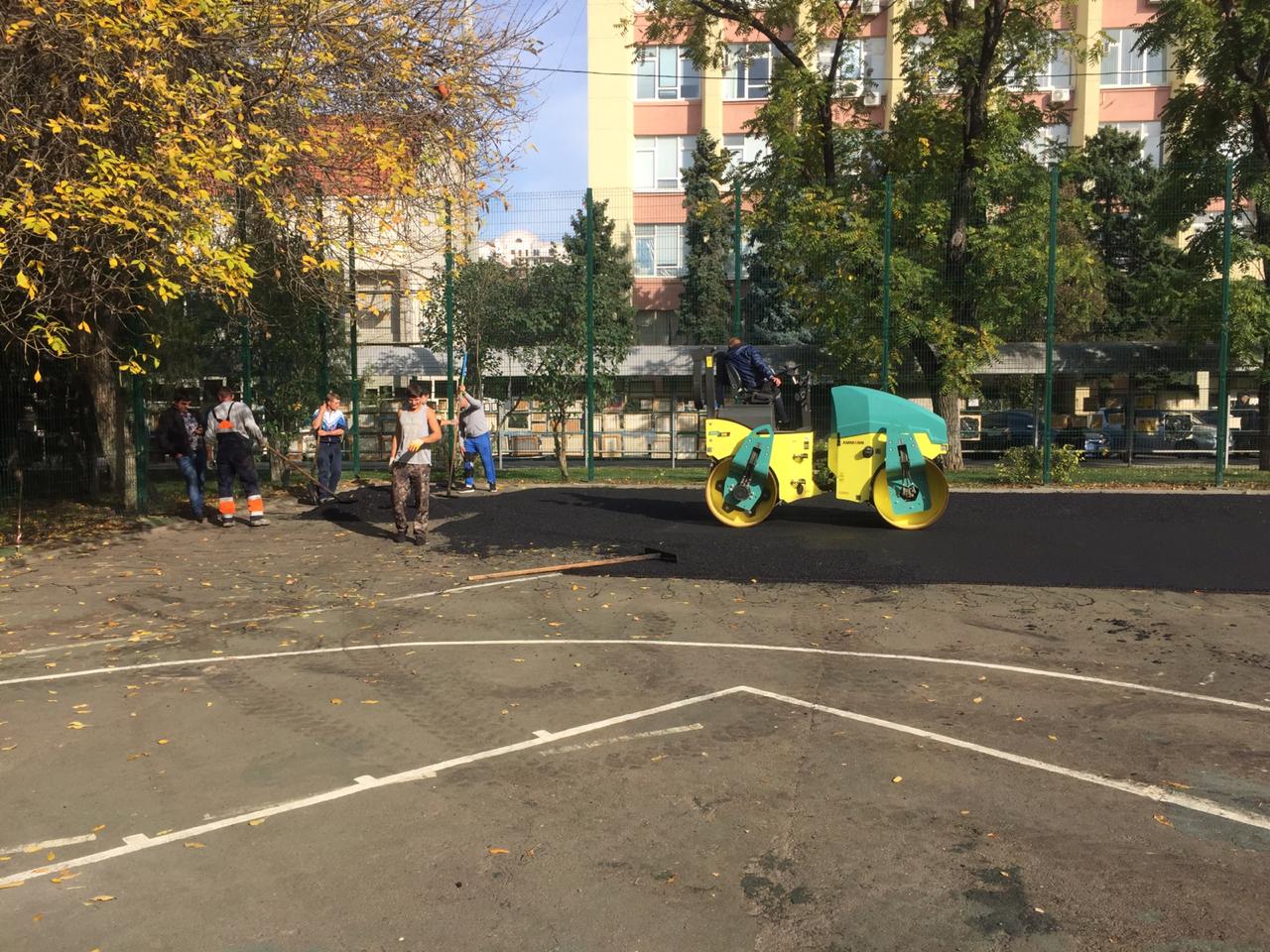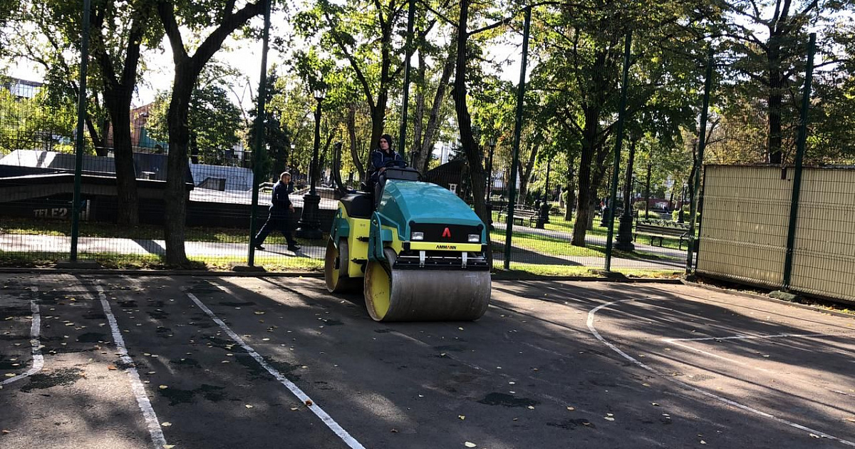 28 октября специалисты подрядной организации начали асфальтирование территории, когда основание будет готово, сверху уложат прорезиненное травмобезопасное покрытие. Кроме того, рабочие полностью заменят ограждения площадок.