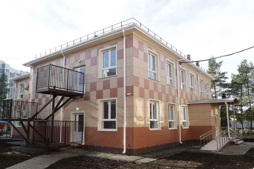 Напомним, все шесть корпусов представляют собой двухэтажные здания общей площадью около 600 кв. м. Каждое рассчитано на размещение двух групповых ячеек с игровыми и вспомогательных помещений — раздаточных, умывальных комнат и т. д. На улице для прогулок детей предусмотрено по два теневых навеса.