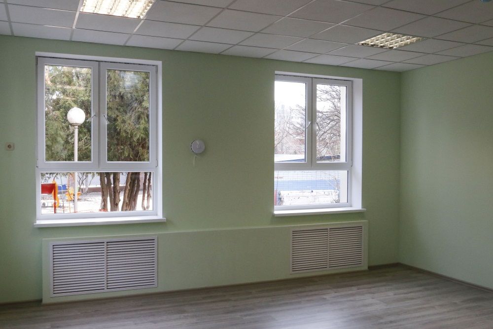 Выполнены внутренние отделочные работы. Помещения подготовлены к установке мебели перед приемом детей. В настоящее время в финальной стадии — благоустройство прилегающих к новым корпусам территорий. На отдельных объектах завершается обустройство теневых навесов и ограждений. Все материалы для этого есть.