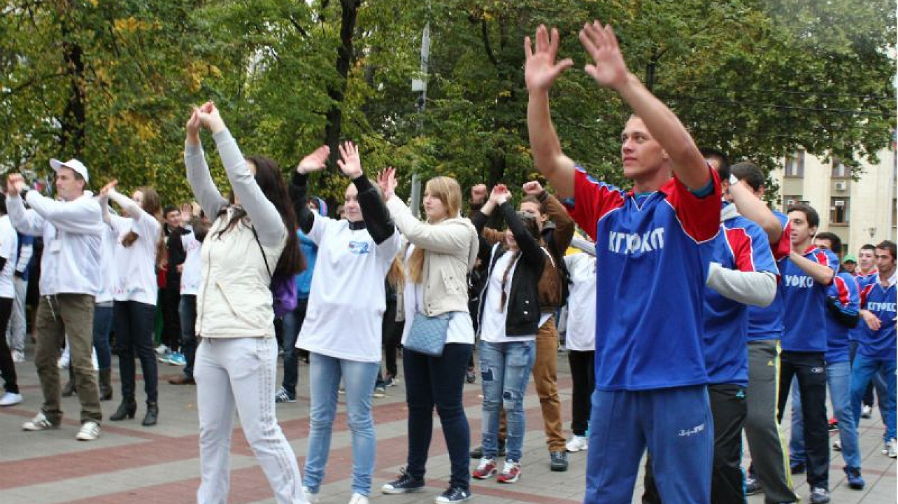 Сотни краснодарских студентов приняли участие в праздничной зарядке