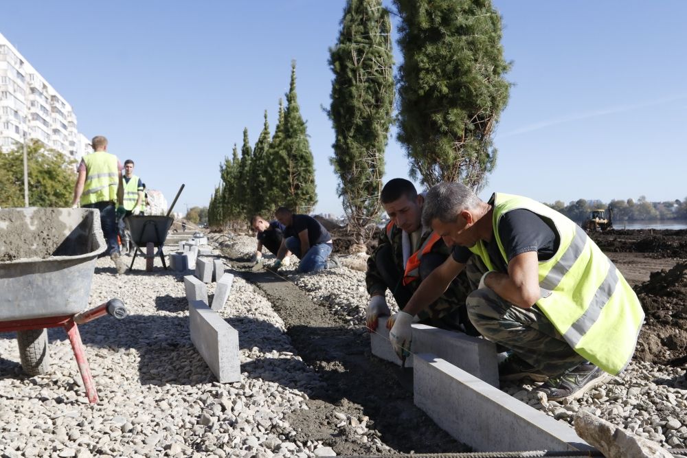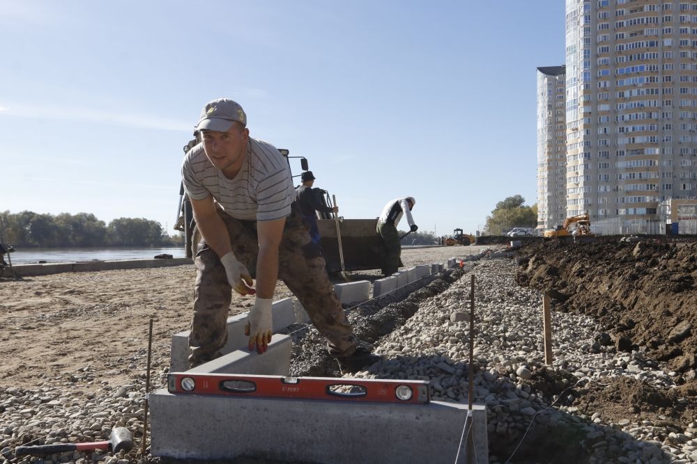 30 октября 2018За два месяца с начала реализации проекта работы по строительству Аллеи в честь 80-летия образования Краснодарского края выполнены на 44%. Сейчас специалисты подрядной организации производят укладку тротуарной плитки и установку бордюрного камня, прокладывают кабели уличного освещения.
