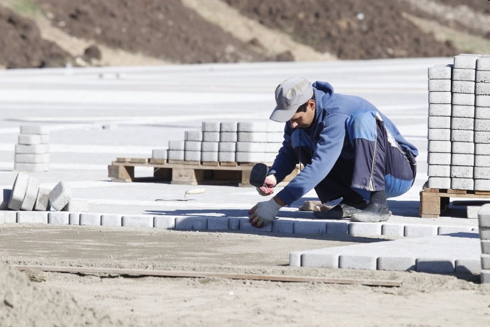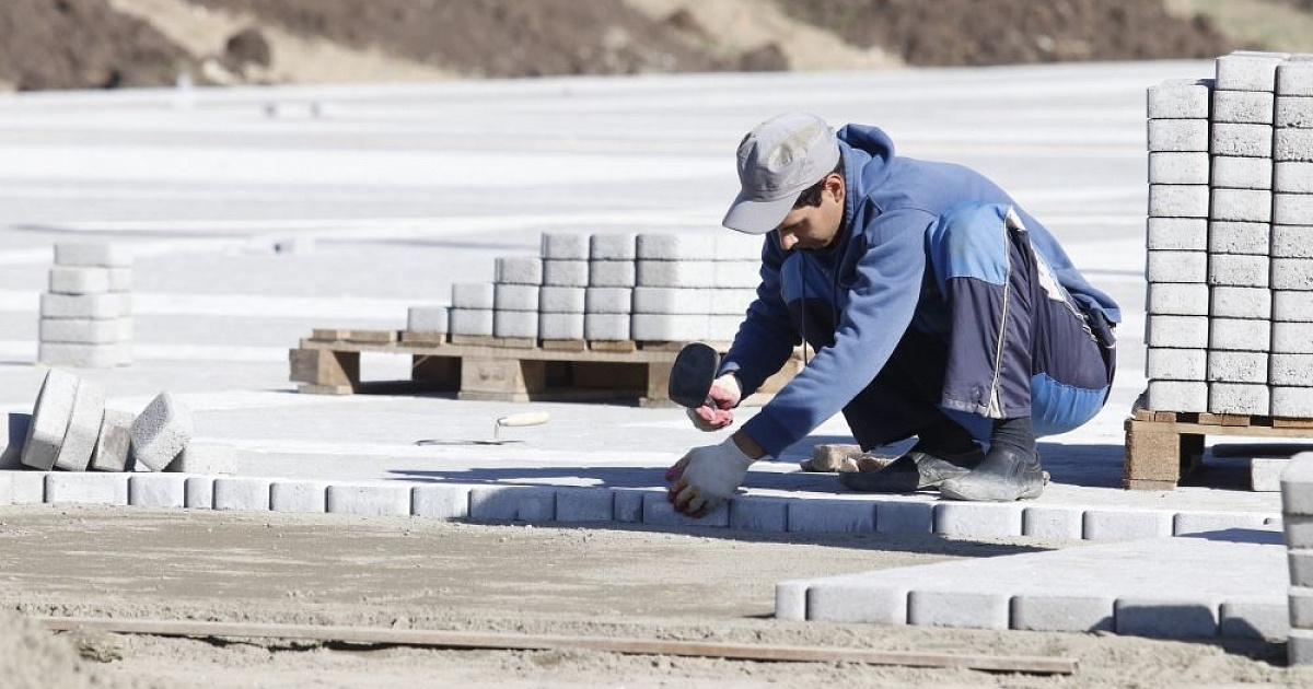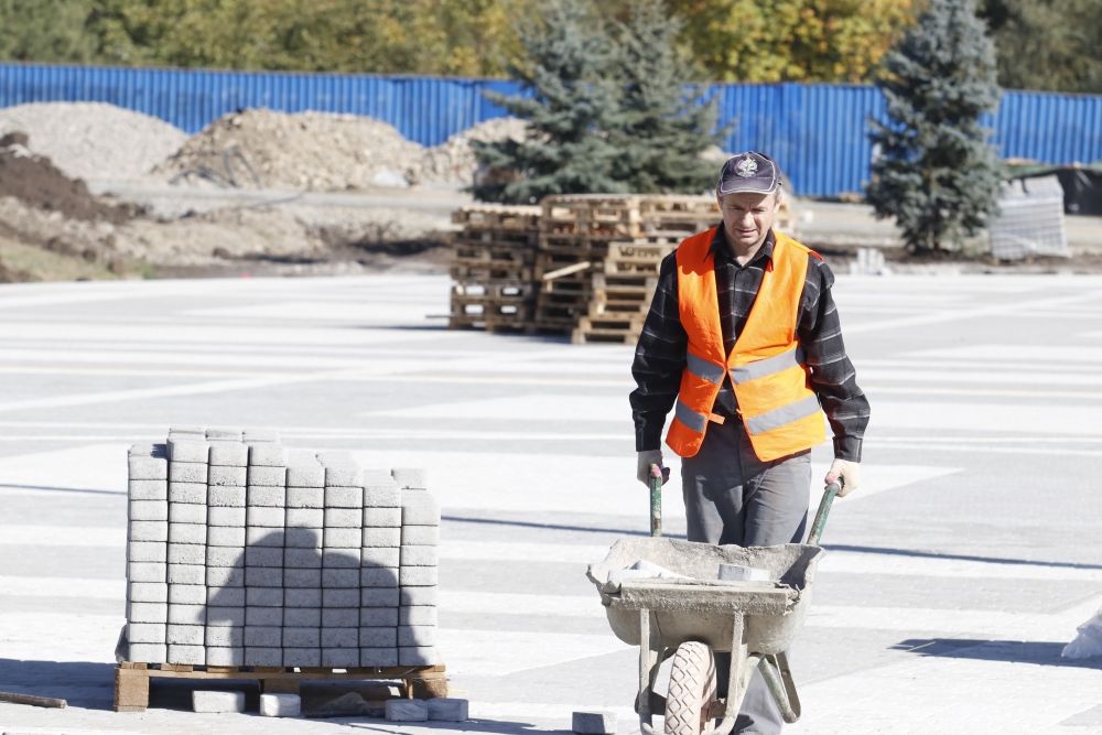 Прежде чем начать укладку плитки, специалисты выполнили вертикальную планировку, включающую в себя завоз грунта, его уплотнение и разбивку участка. Для этого было использовано более 35 тыс. куб. м земли.