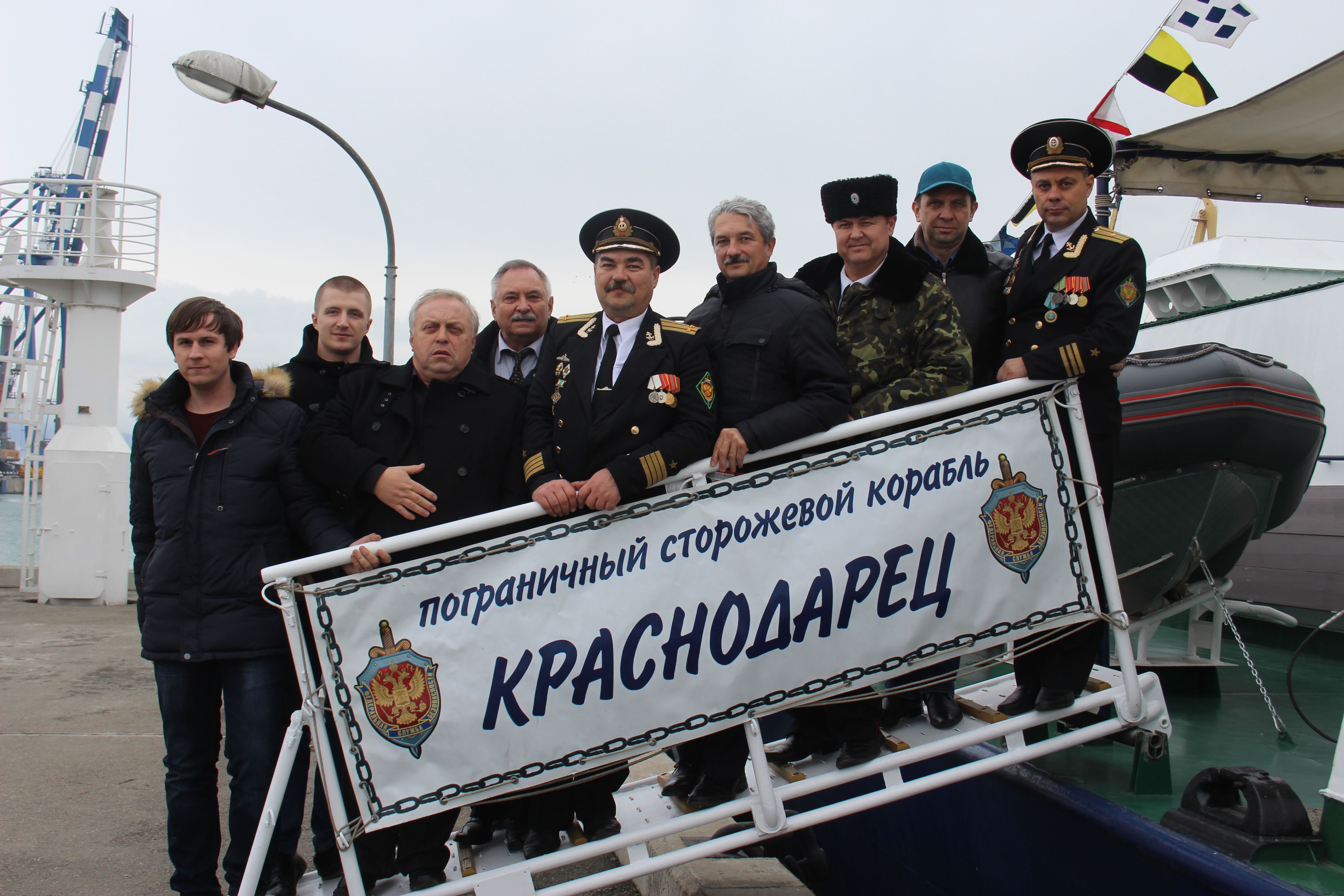 — Перед моряками пограничного сторожевого корабля «Краснодарец» стоят непростые задачи по охране морских рубежей нашей Родины, контролю за соблюдением иностранными судами экономической зоны, обеспечению сохранности прибрежных коммуникаций. Мы гордимся дружбой с экипажем боевого корабля «Краснодарец», — приветствовал экипаж подшефного корабля руководитель краснодарской делегации, заместитель главы администрации Карасунского внутригородского округа Олег Здрок.