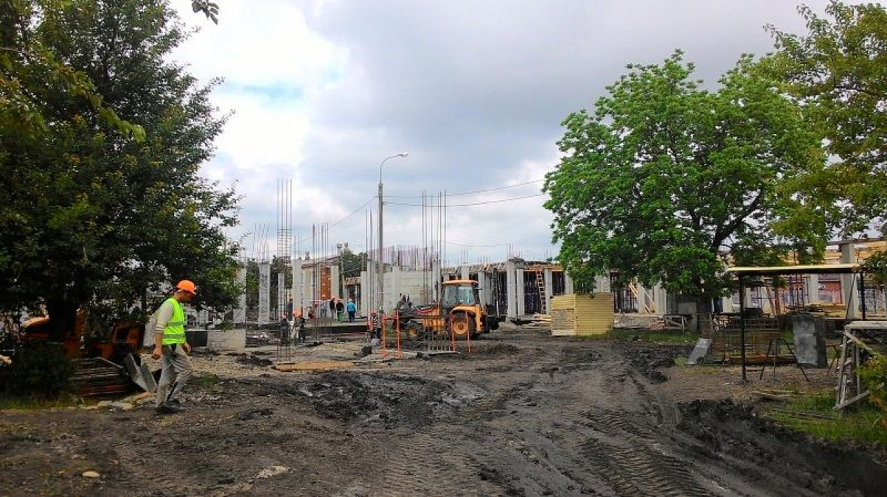 Еще один строящийся объект — новая школа на 1000 мест в х. Ленина. После возобновления финансирования работы здесь также продолжаются.