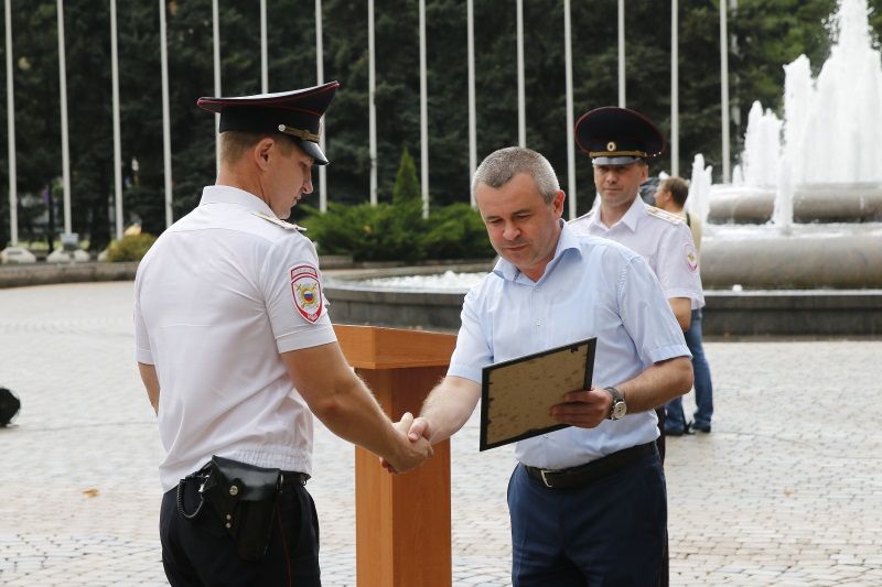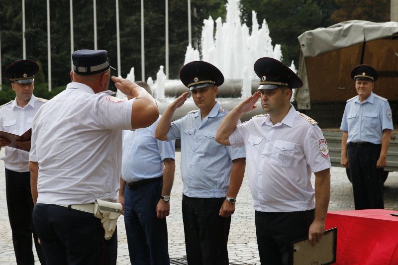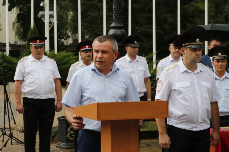 На Соборной площади столицы Кубани прошёл расширенный развод подразделений городской полиции, посвящённый обеспечению безопасности школ города во время празднования Дня знаний и в течение наступающего учебного года. В мероприятии принял участие исполняющий обязанности главы Краснодара Александр Михеев.