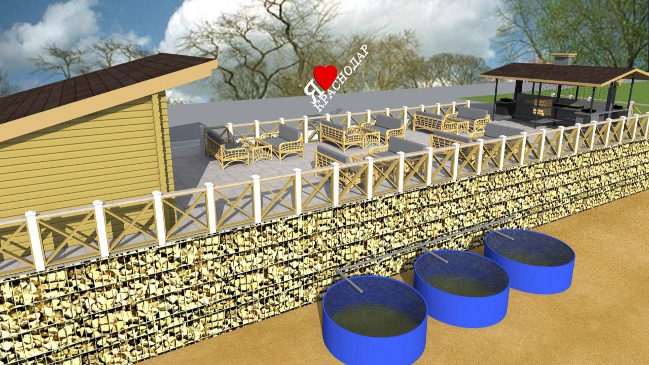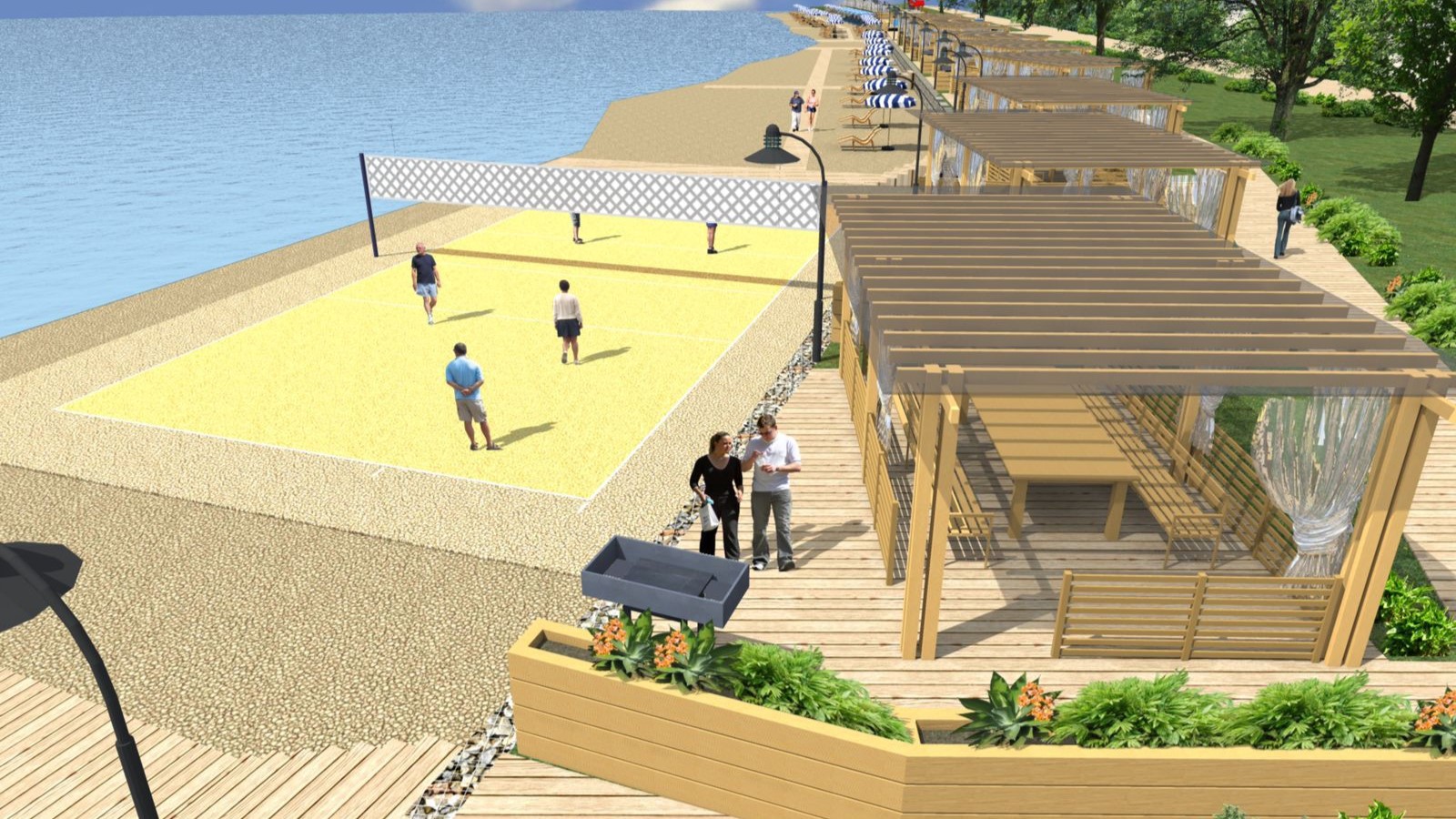 Согласно проекту, на песчаной территории, которая составит более 4 тыс. кв. метров, установят теневые беседки для отдыха, общественные туалеты, спортивную и детскую игровую площадки. Также в связи с запретом купания в реке Кубани рассматривается возможность размещения бассейнов. Для комфортного отдыха у воды в пляжной зоне установят шезлонги.