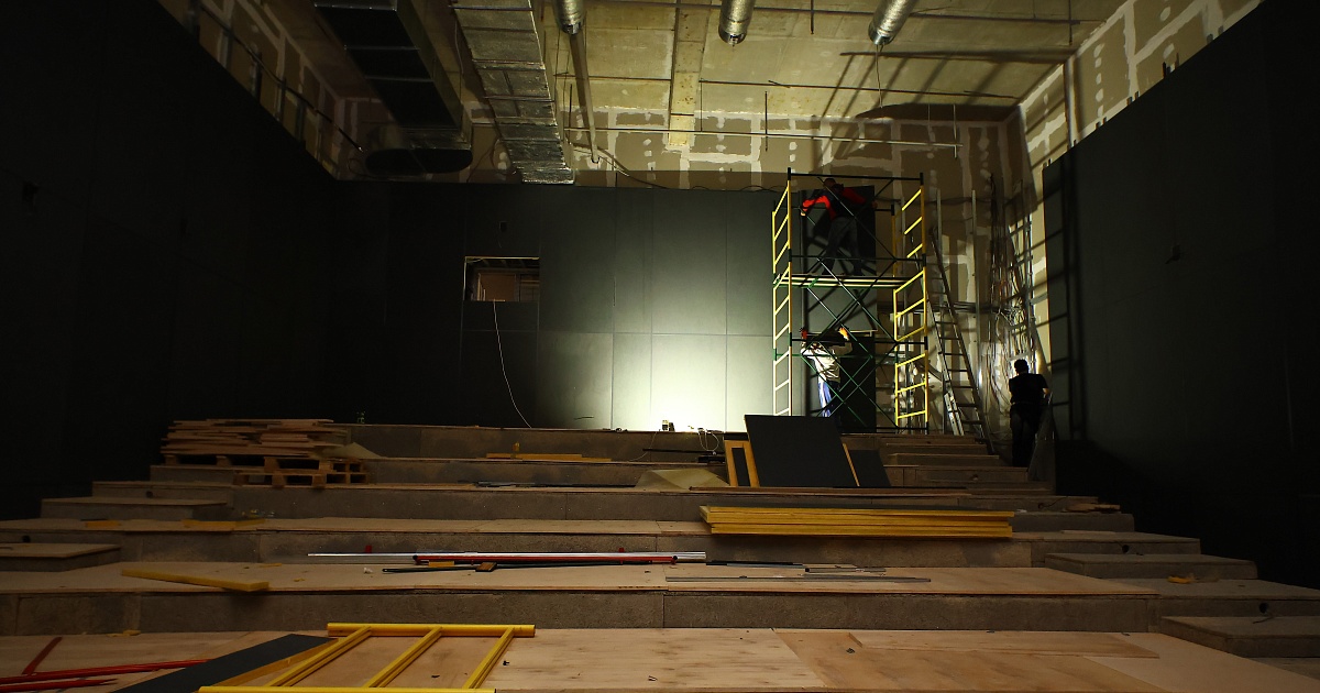 В прошлом году завершили прокладку кабеля системы видеонаблюдения на четвёртом и пятом этажах, устройство системы кондиционирования, установку противопожарных дверей в кинозалах и на запасных выходах. Проводились работы по монтажу электрики, прокладке проводки для силовых щитов, устройству системы вентиляции, сетей водоснабжения и канализации.
