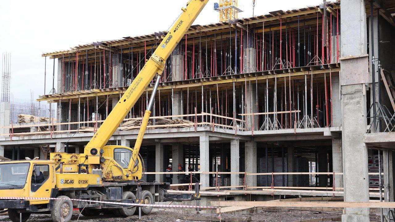 В настоящее время выполнено бетонирование плит перекрытия, армирование колонн, монтаж внутренних электрических сетей. На стройплощадке каждый день работает порядка сотни человек. Отставание от графика отсутствует.