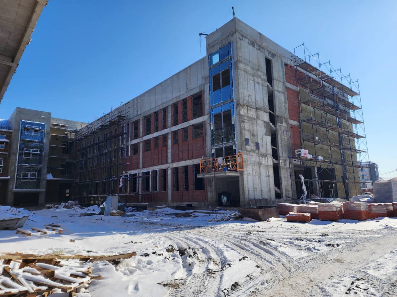Строят школу по ул. Тверской, 10 в рамках национального проекта «Образование». Планируется, что к 1 сентября этот социальный объект откроет свои двери для первых учеников. Сейчас строители завершают работы по устройству кровли, оконных блоков, кладке наружных и внутренних перегородок. Устанавливают внутренние инженерные сети, утепляют фасад и ведут отделочные работы.