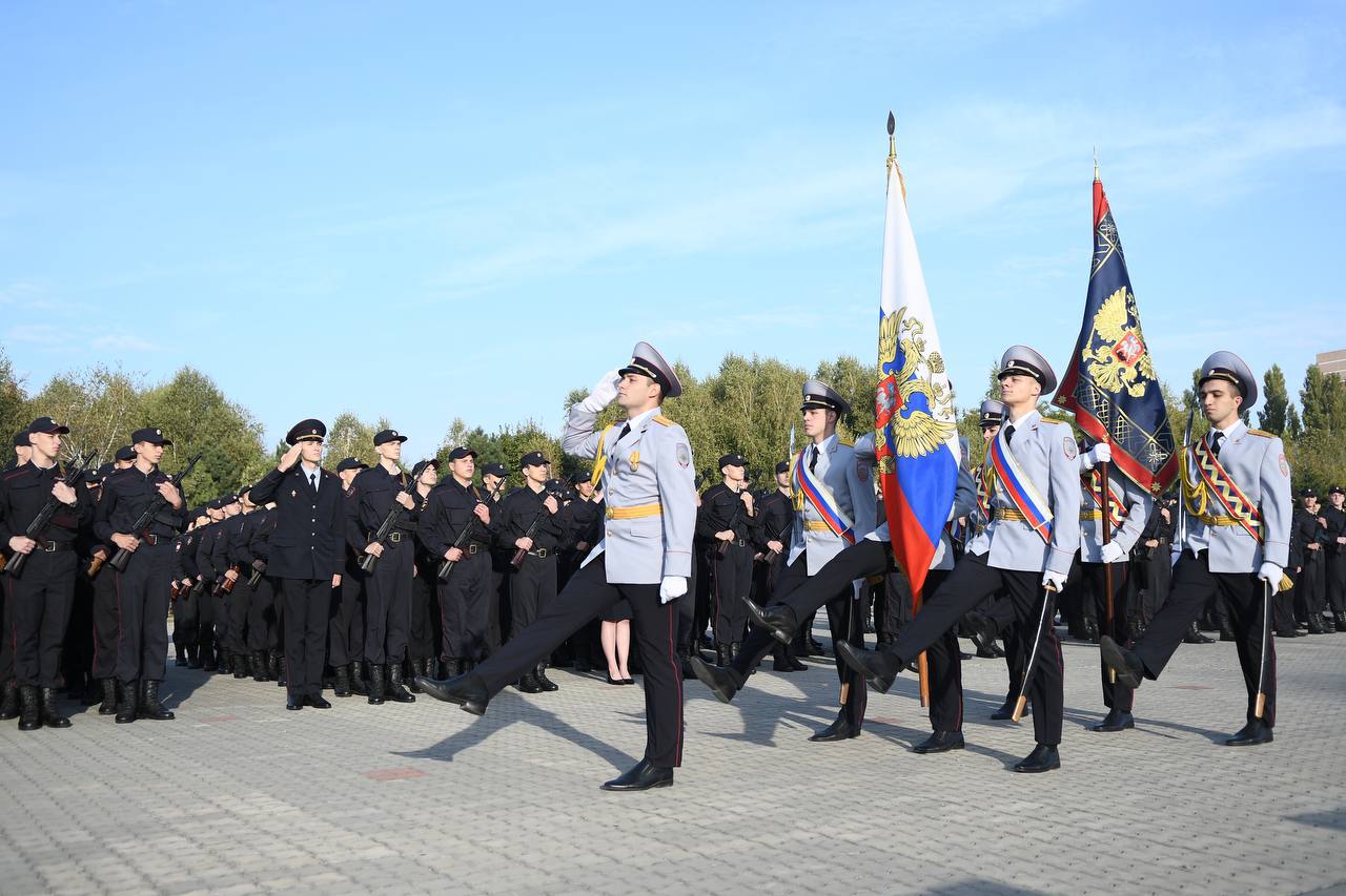 Церемония завершилась прохождением личного состава университета торжественным маршем. На плац вышли будущие специалисты в сфере правового обеспечения национальной безопасности, законности и правопорядка, судебной экспертизы, экономической безопасности, ГИБДД, безопасности информационных технологий в правоохранительной сфере и менеджмента.