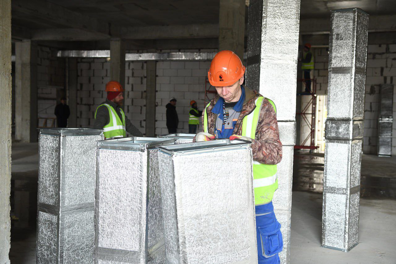 Школа по ул. Планетной в пос. Плодородном на 1550 мест готова на 76%. Планируется завершить строительство летом этого года. Сейчас строители занимаются внутренней отделкой и благоустраивают территорию вокруг школы.