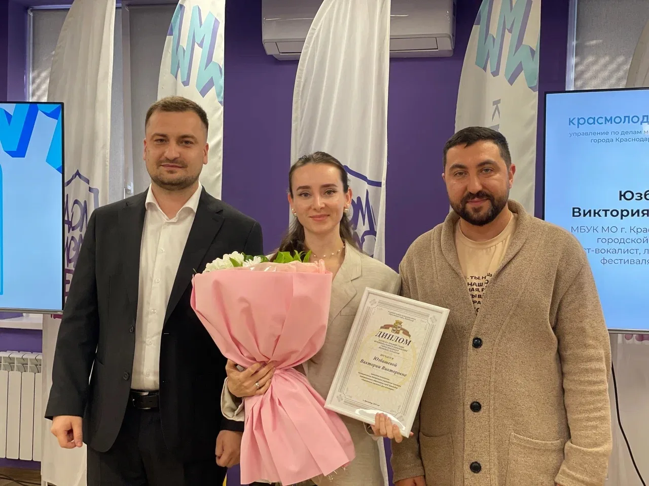 Награды лауреатам вручили начальник управления по делам молодёжи Денис Малюков и депутат городской Думы Владимир Вербицкий.