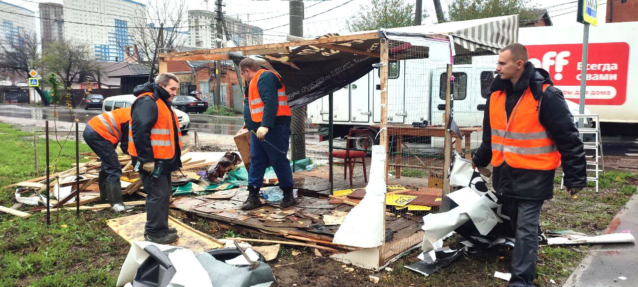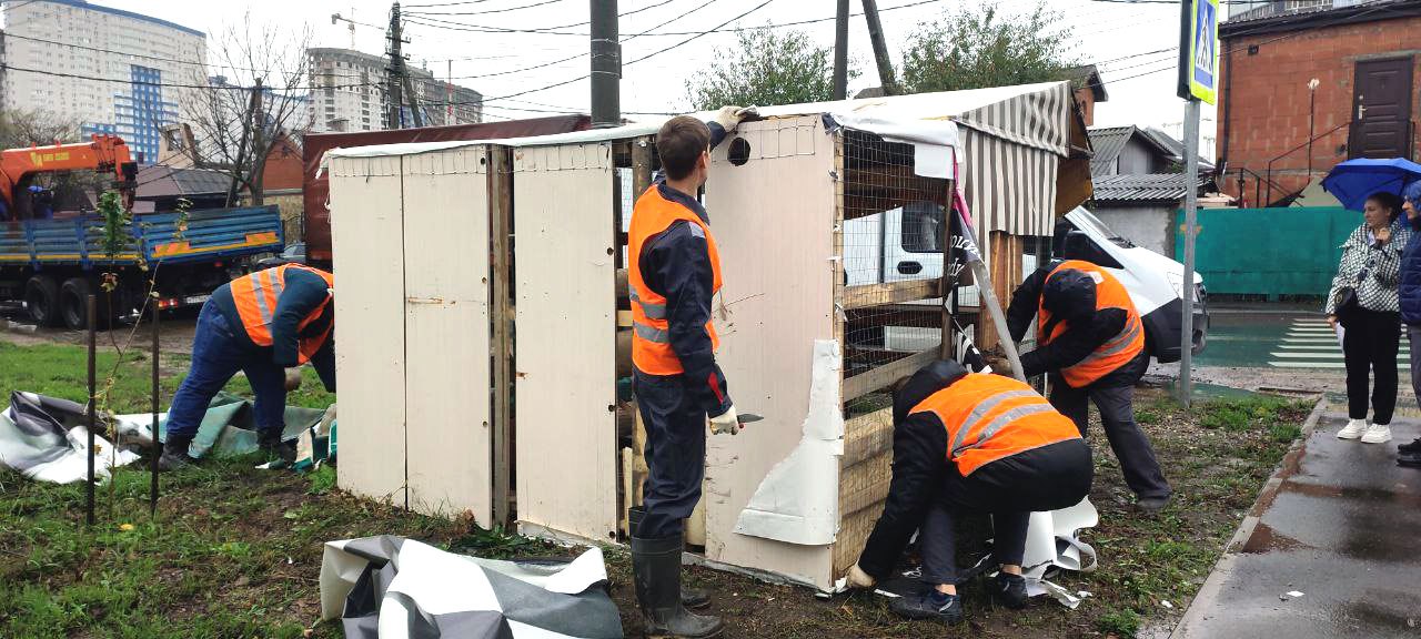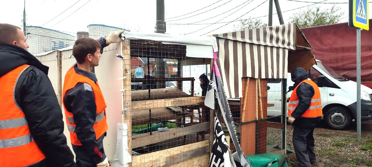 В конце октября специалисты демонтировали два лотка по продаже кваса, четыре гаража, а также палатку по продаже овощей на ул. им. Тюляева, 19/1.