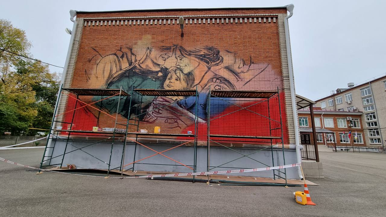 25 октября 2024В кубанской столице на здании гимназии № 3 по ул. им. Хакурате, 5 наносят семейную картину. Яркое и тёплое изображение займет 12 метров в ширину и 10 метров в высоту. На его оформление потребуется более 100 баллончиков аэрозольной краски. Завершить создание семейного мурала планируют на следующей неделе.