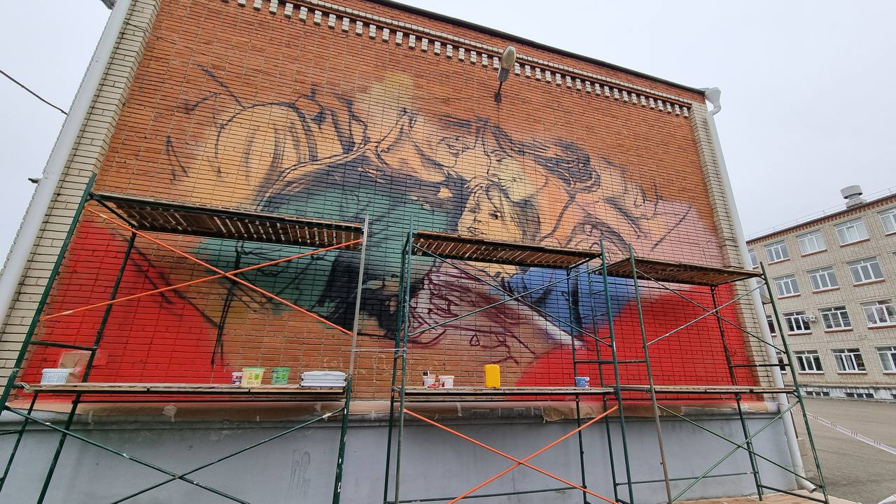 В Краснодаре приступили к нанесению мурала по мотивам созданной на ВДНХ картины