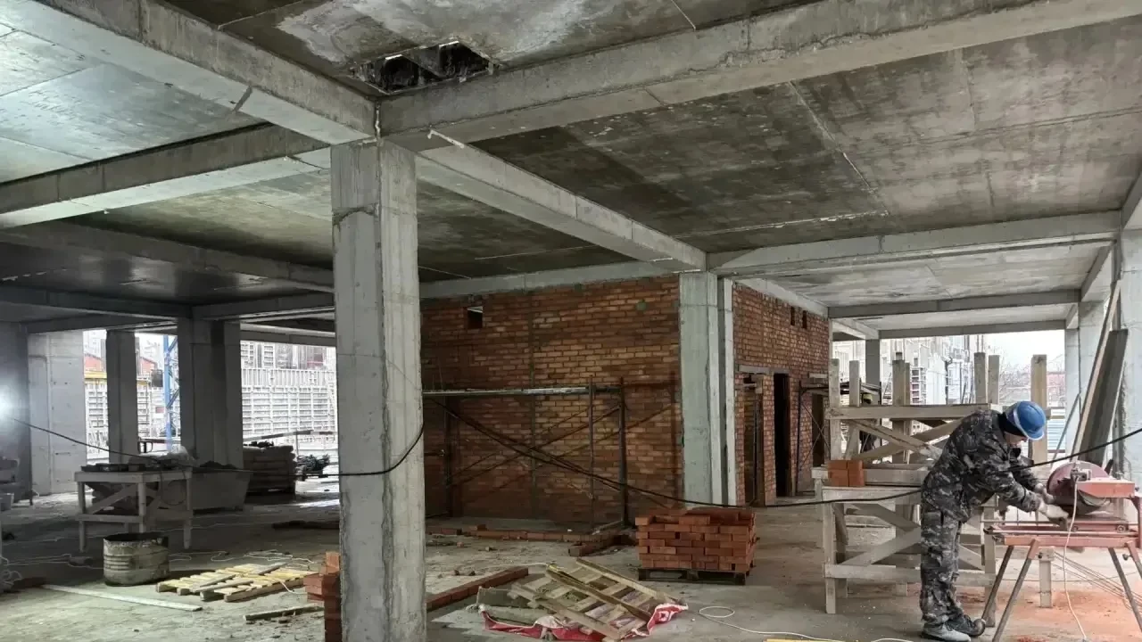 Площадь трёхэтажного здания превысит 7000 кв. м. В настоящее время выполняются армирование колонн и стен первого и второго этажей, кладка перегородок и гидроизодяция подвала. На объекте трудятся более 30 человек.