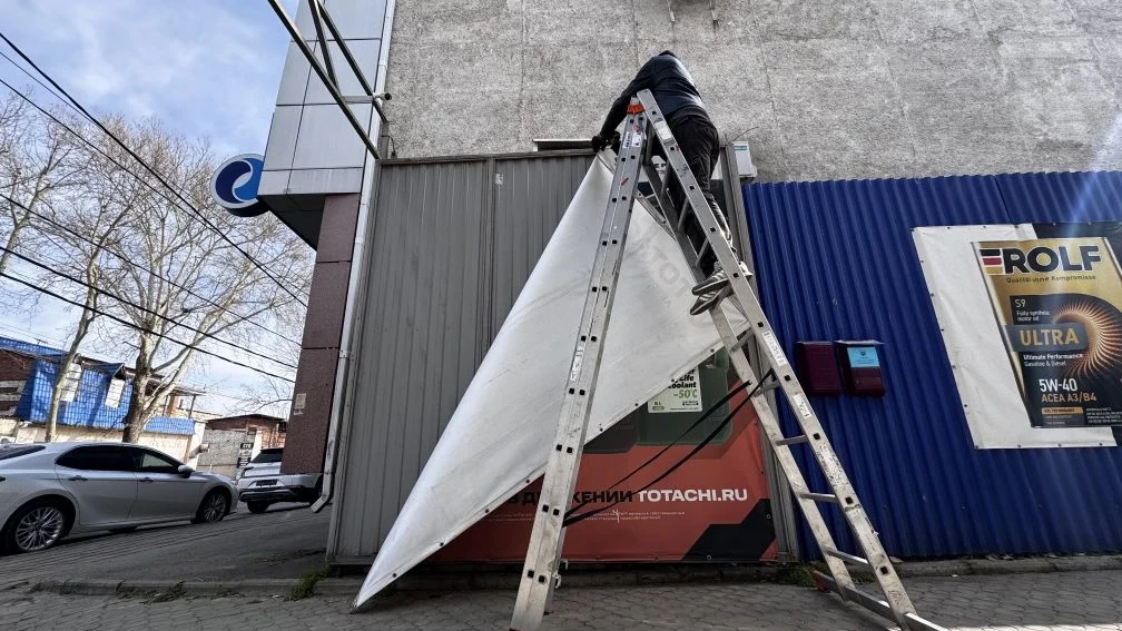 Демонтаж вывесок с нарушениями начали в краевой столице в феврале 2026 года.