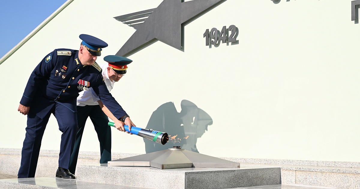 Почётное право первыми зажечь его получили командир сборного городского отряда Почётного караула Поста № 1 Владислав Хить и участник специальной военной операции, гвардии майор ВДВ, кавалер двух орденов Мужества Георгий Кольцов.