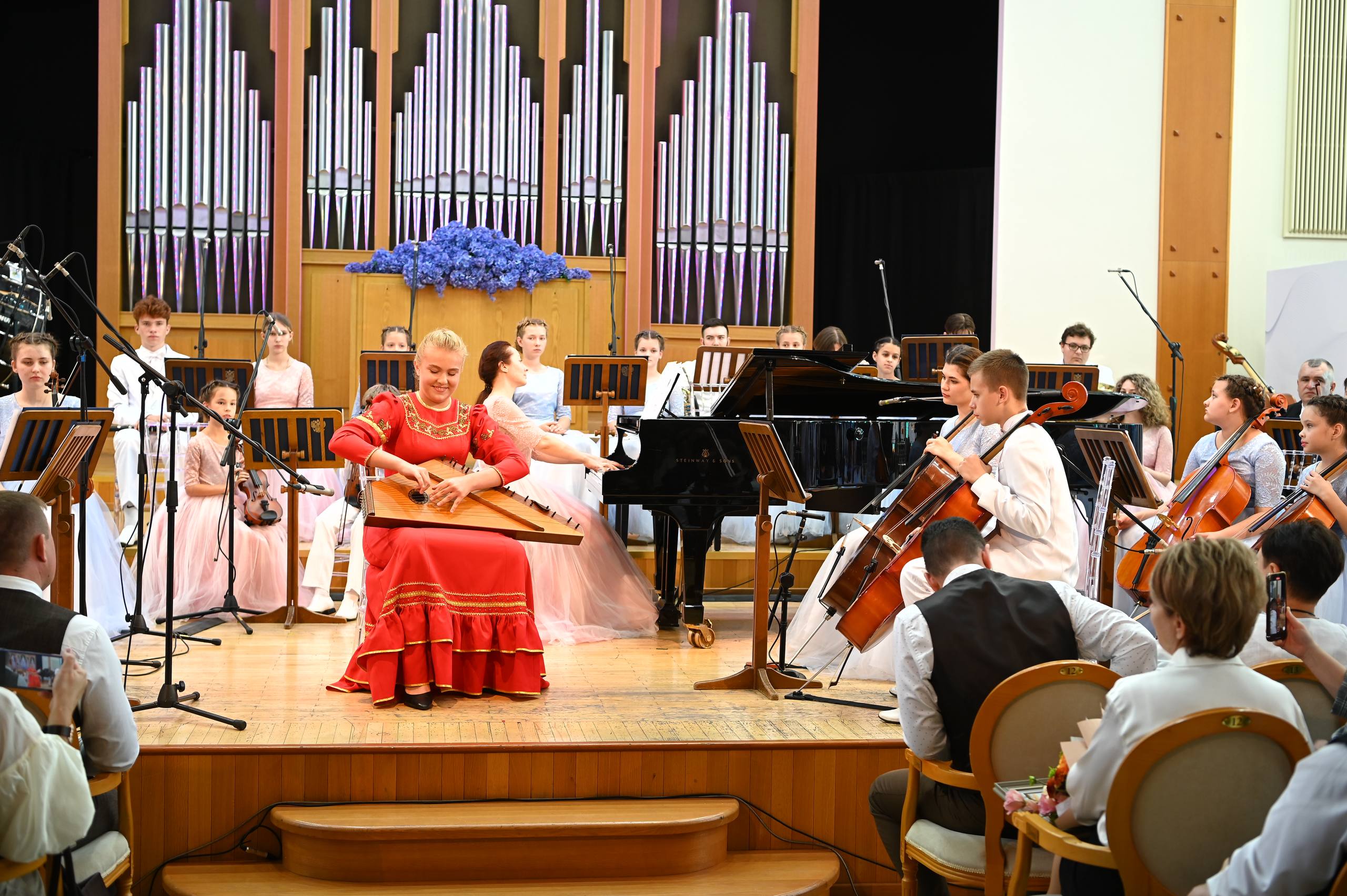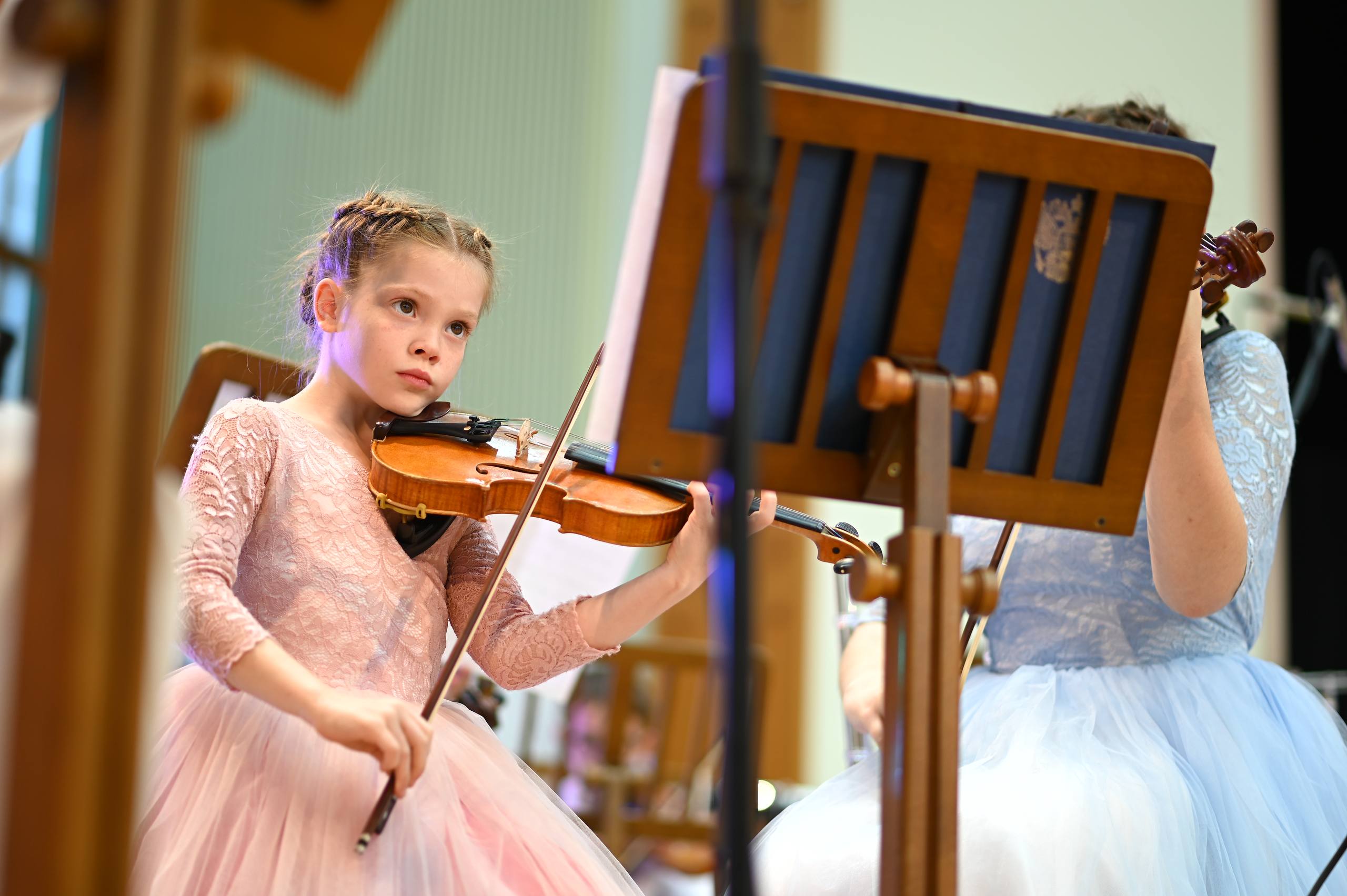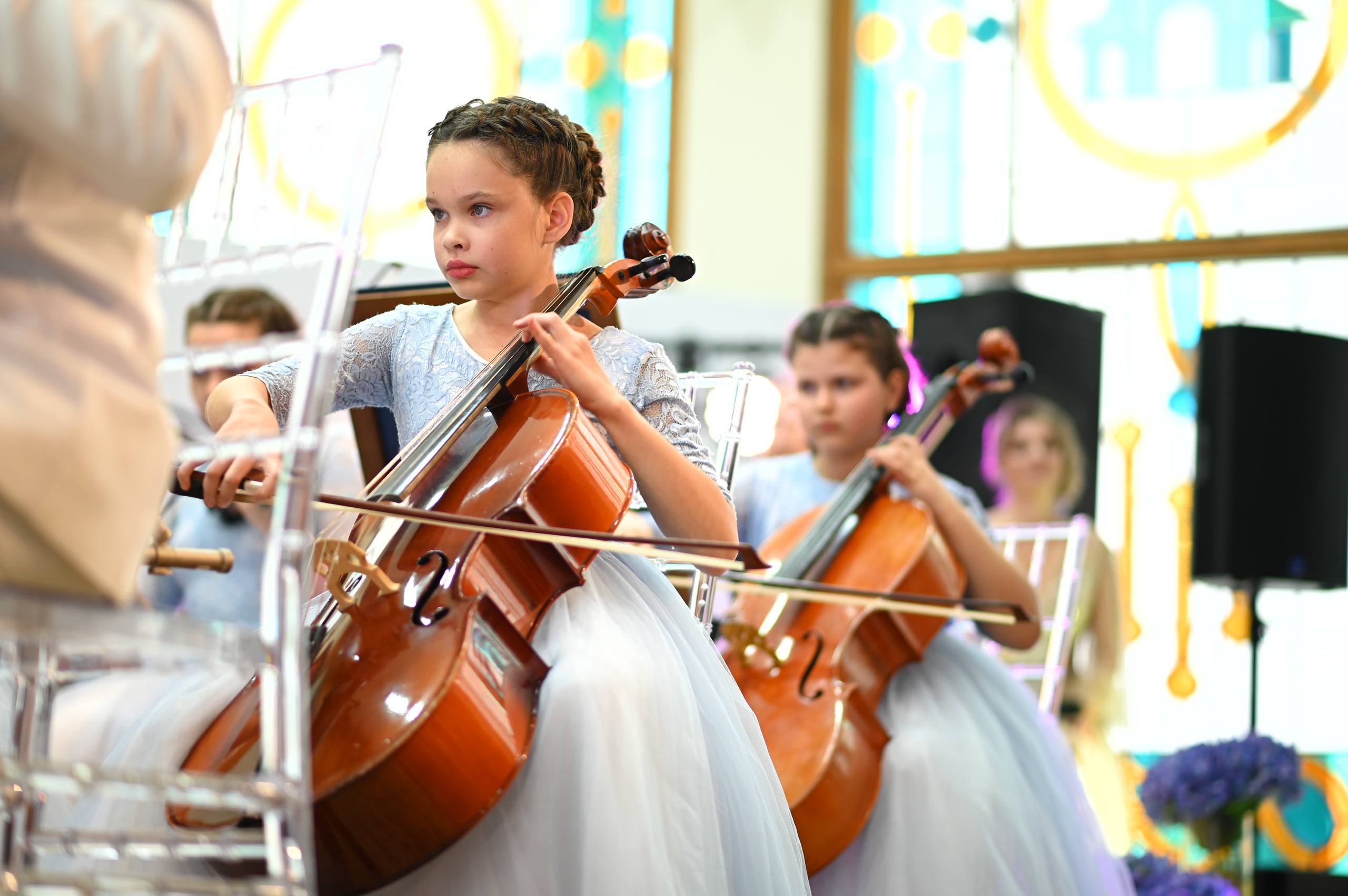 Праздничный концерт собравшимся подарили детские творческие коллективы города. В программе прозвучали классические и народные произведения. Юные музыканты играли на скрипке, гуслях, читали стихи и исполняли песенные номера в сопровождении Детского симфонического оркестра.