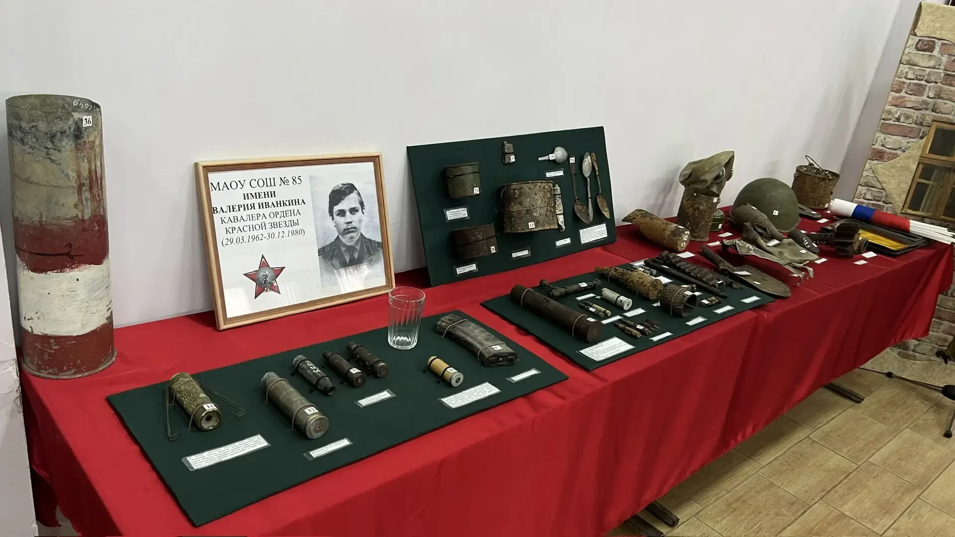 Новая экспозиция школьного музея посвящена боевым действиям в Афганистане и содержит личные вещи солдат и офицеров, воевавших в горячей точке, элементы боеприпасов, обмундирование и военное снаряжение. Предметы школе передали