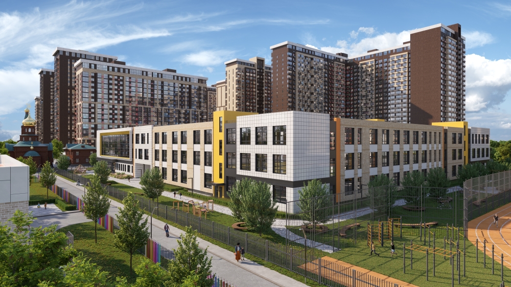 Строительство школы на 1550 мест на территории ЖК «Родные просторы» в пос. Знаменском стартовало в декабре 2020 года. Сейчас идут работы по отделке помещений и фасада здания, благоустройству территории и обустройству стадиона. Завершить