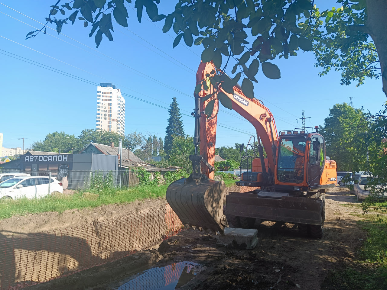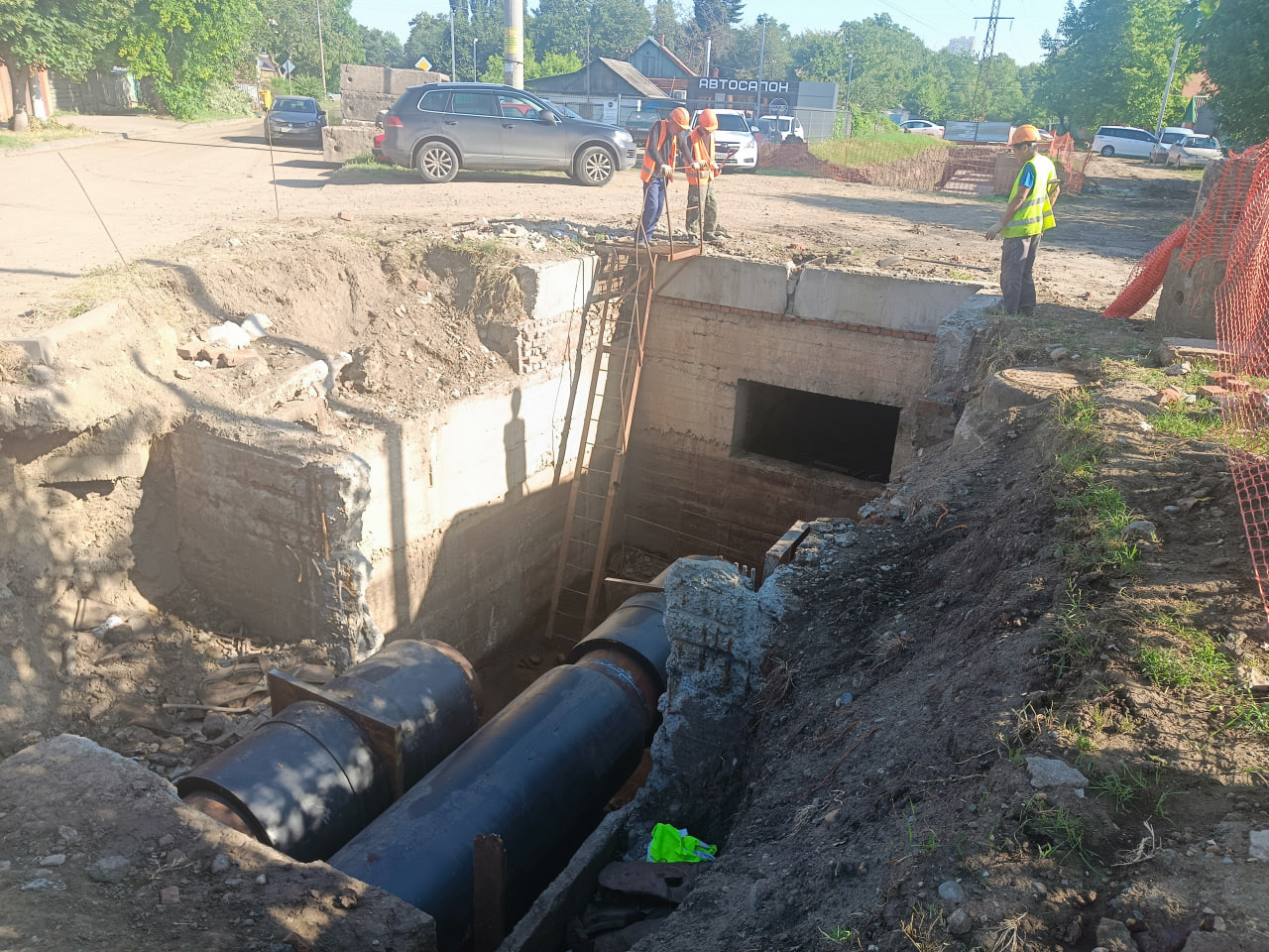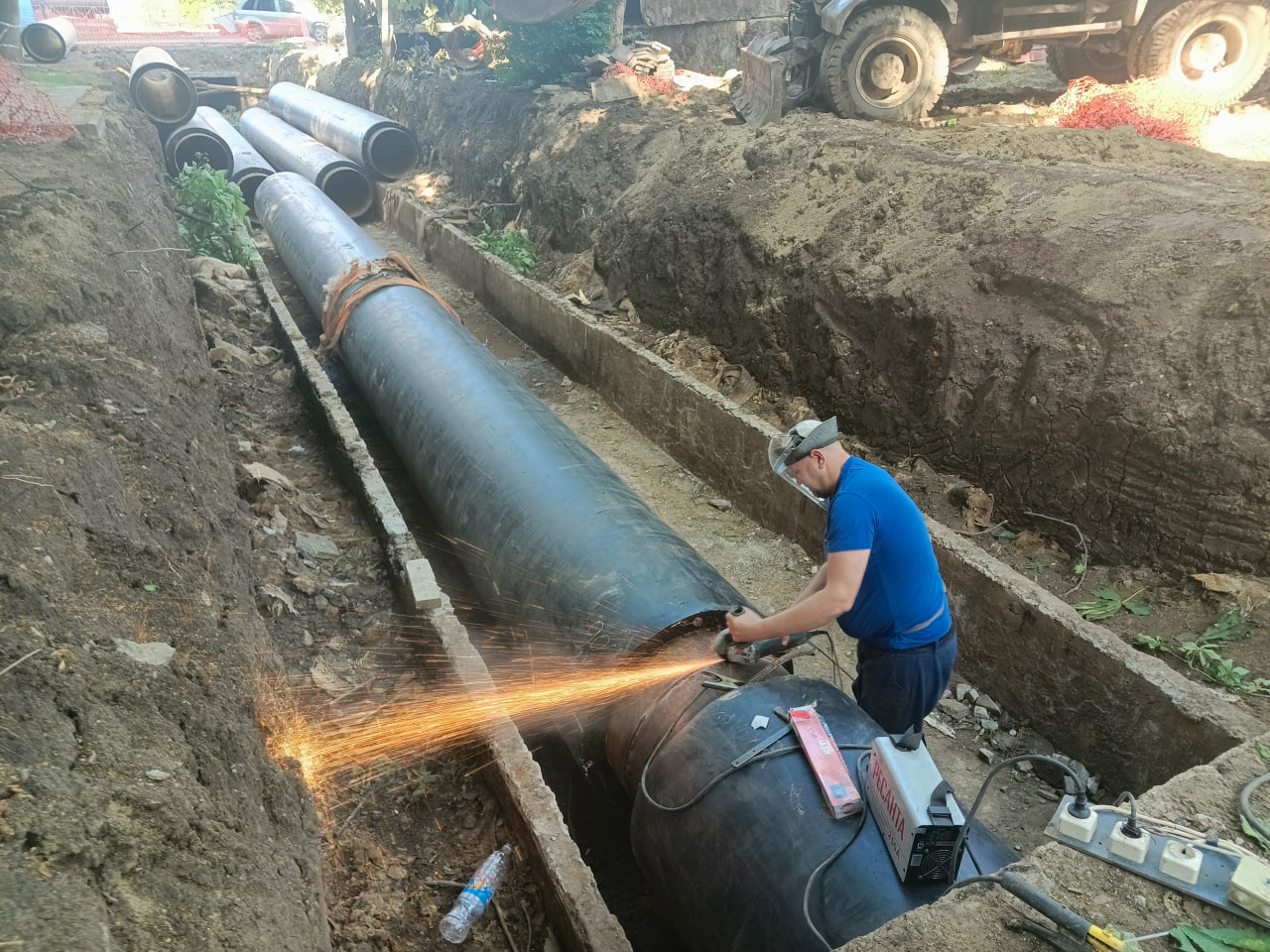 На данный момент идут сварочные работы, продолжается укладка новых труб в районе ул. Онежской.
