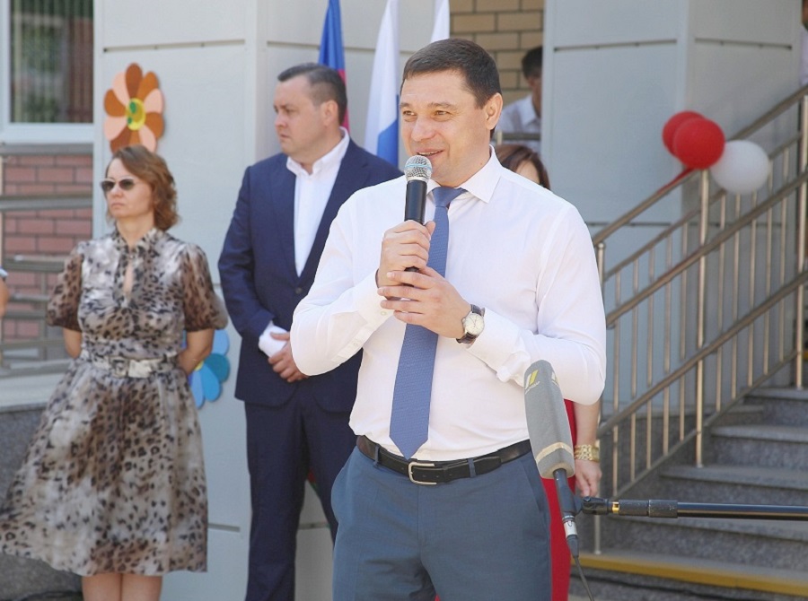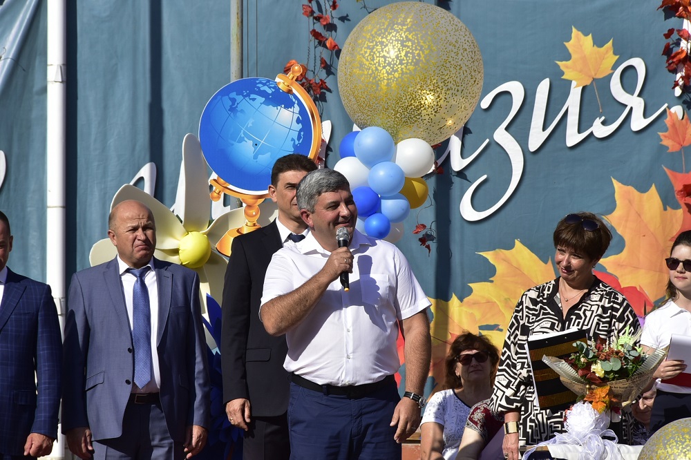 2 сентября в школе прошли четыре торжественных линейки для разных возрастных групп. Одну из них посетил глава города Евгений Первышов.