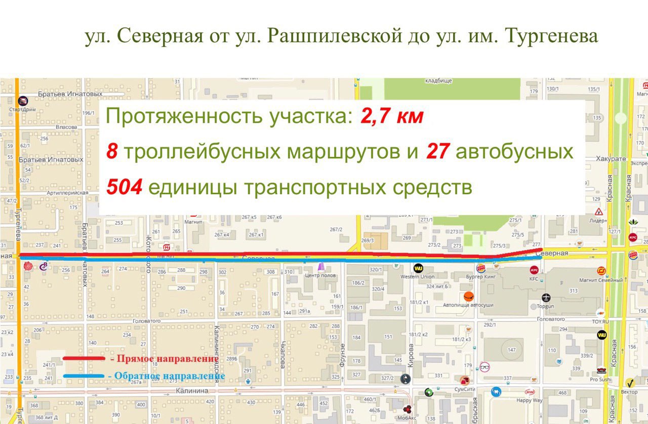 — 10 июля — новая выделенная полоса на участке ул. Северной общей протяженностью 2,7 км. По ней, в том числе, идут рейсовые и пригородные автобусы, которые въезжают в город и выезжают из него по Тургеневскому мосту.