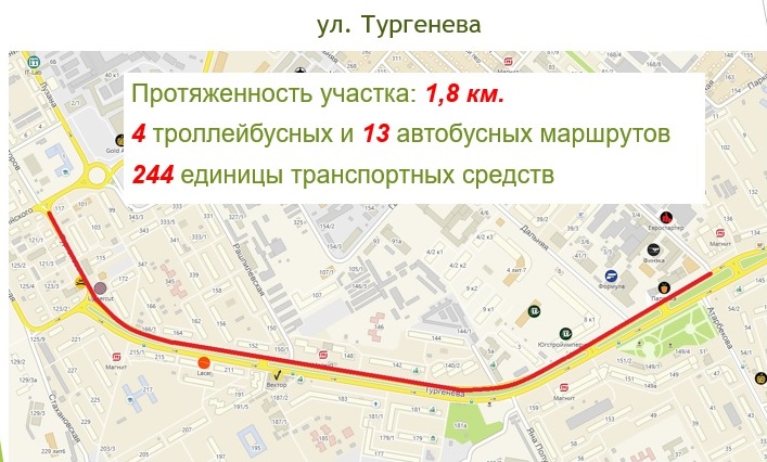 — 20 августа — выделенная полоса по ул. им. Тургенева от ул. Дальней до ул. им. Дзержинского в одном направлении протяженностью 1,8 км.